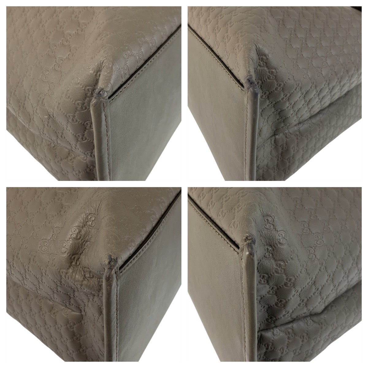GUCCI Tote Bag 510291 leather Grey GoldMetal Tote Bag Shoulder Bag 2way Micro Guccisima Women Used Authentic