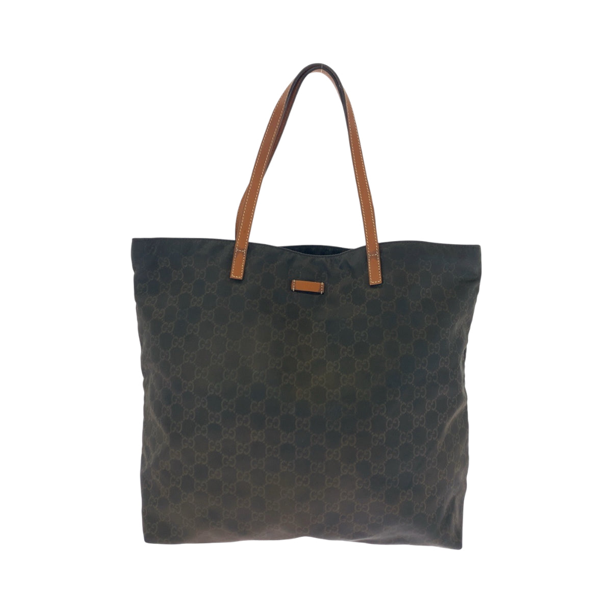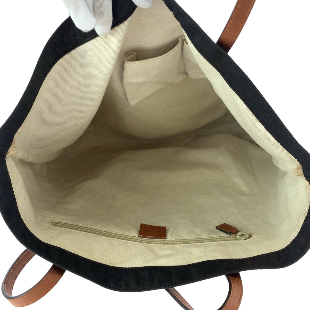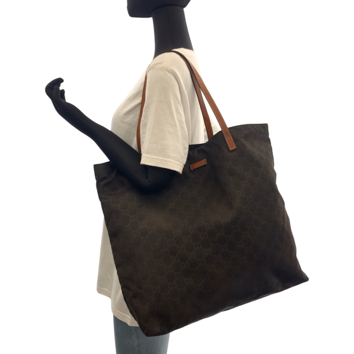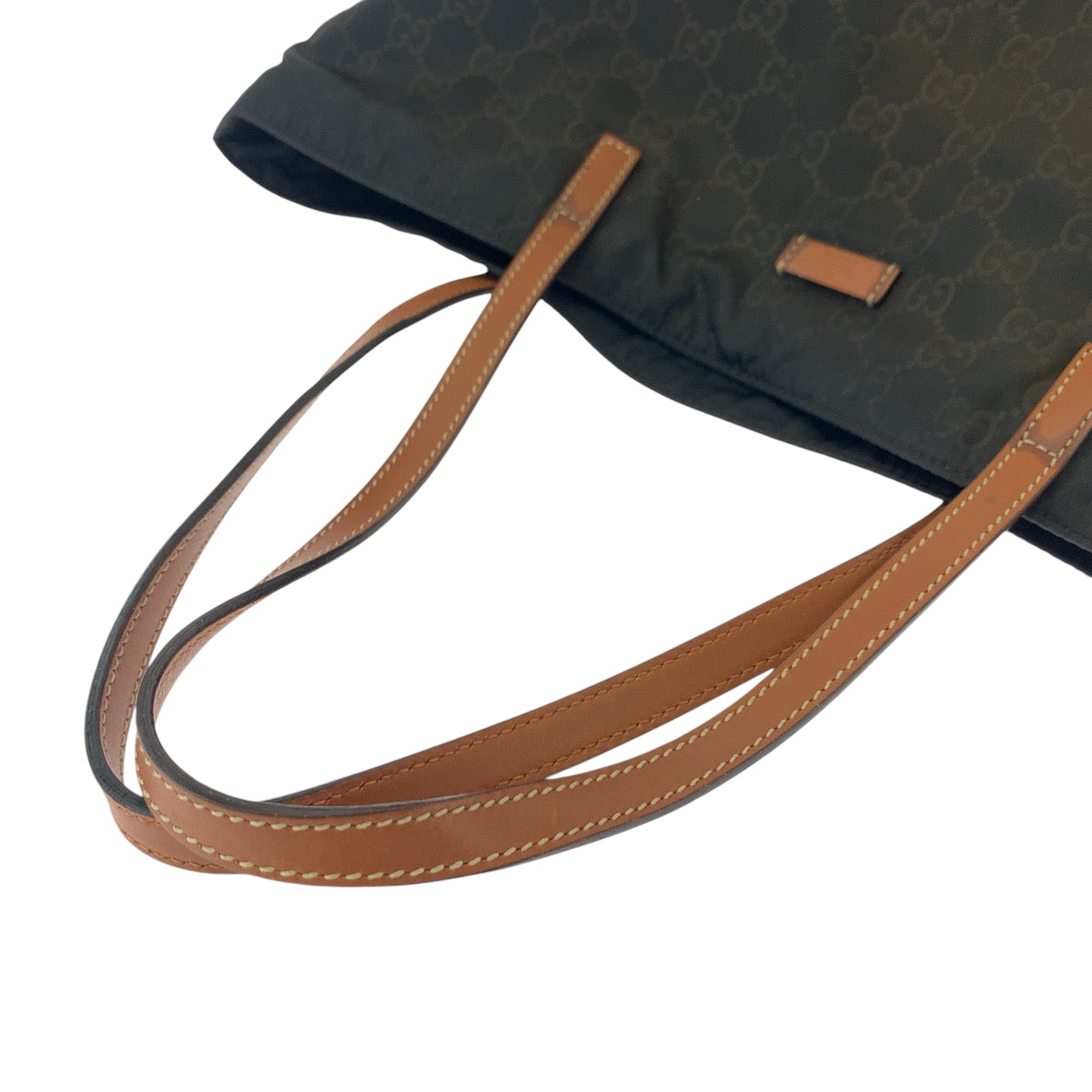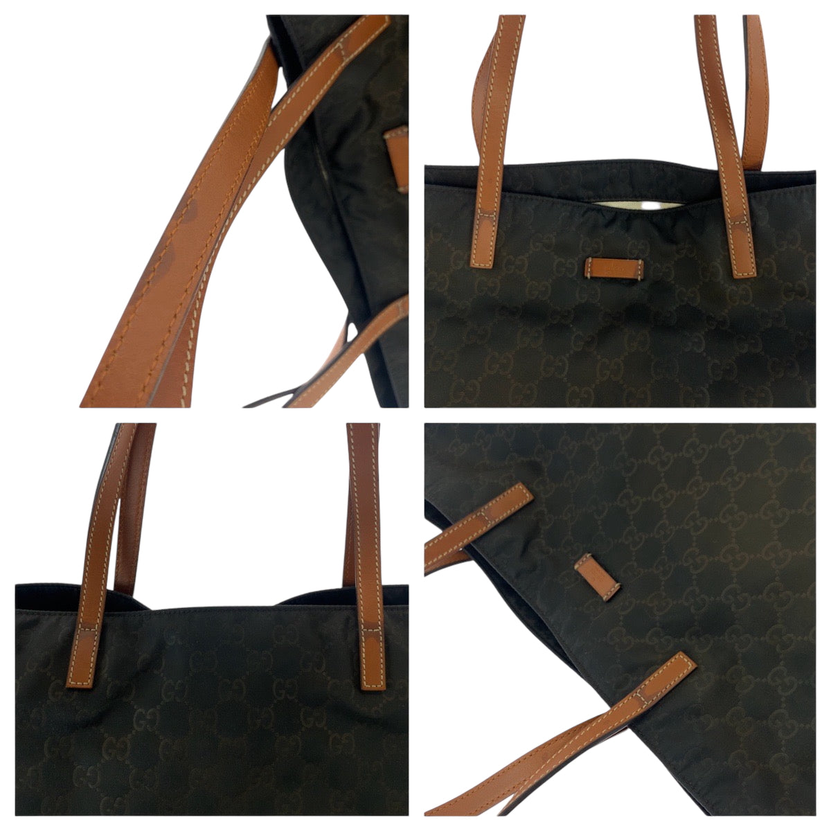 GUCCI Tote Bag 524947 Nylon Brown Black Gold Metal Tote Bag Shoulder Bag Women Used Authentic