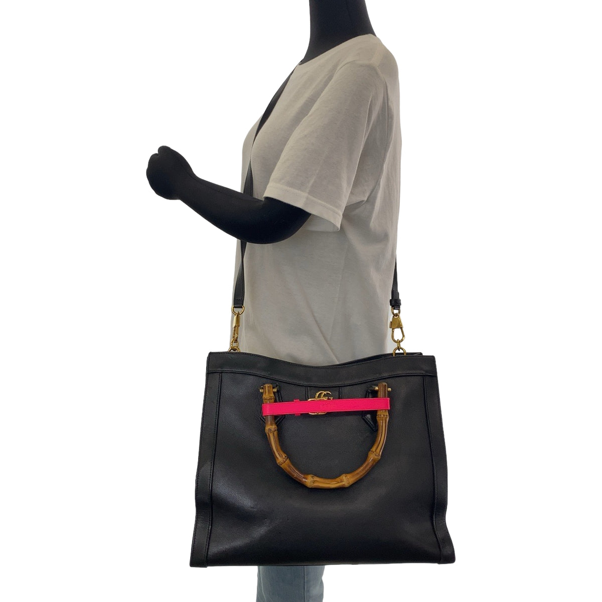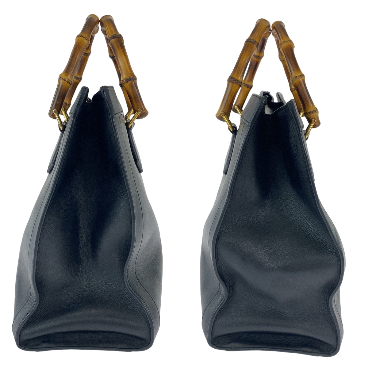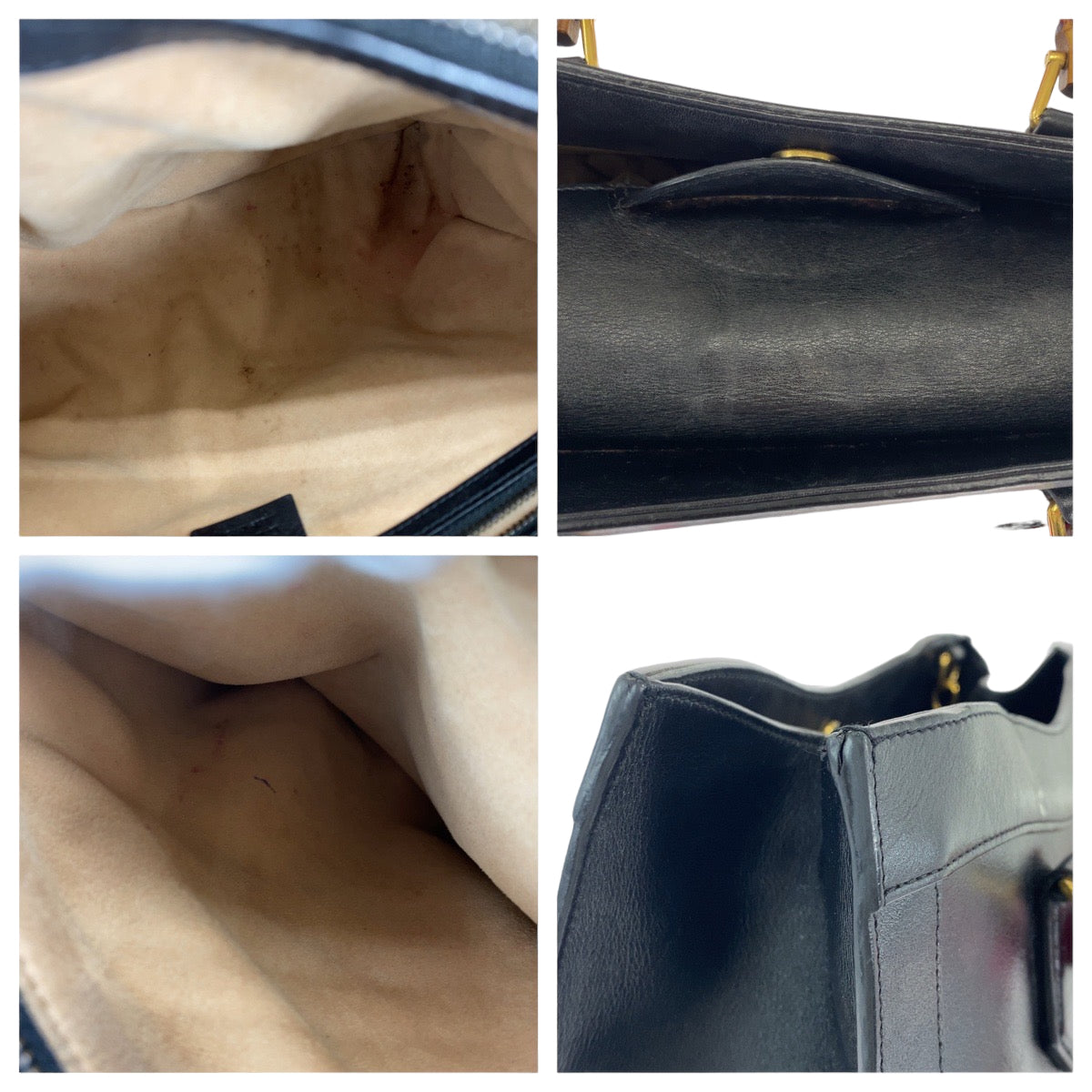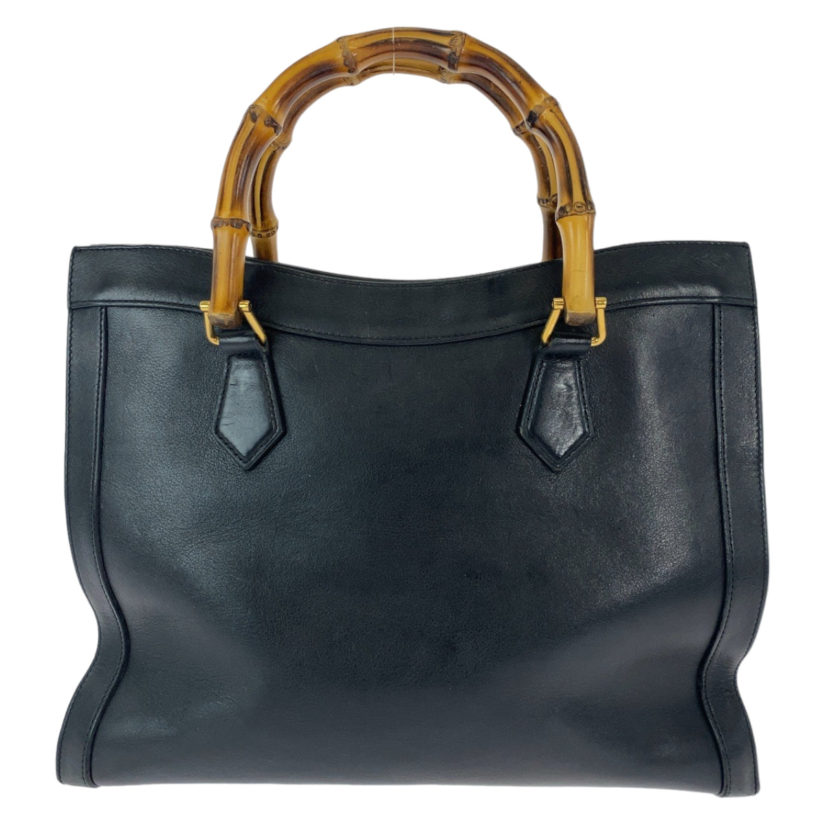GUCCI Tote Bag 655658 leather Black GoldMetal Tote Bag Shoulder Bag Handbag 2way Bamboo Diana Women Used Authentic