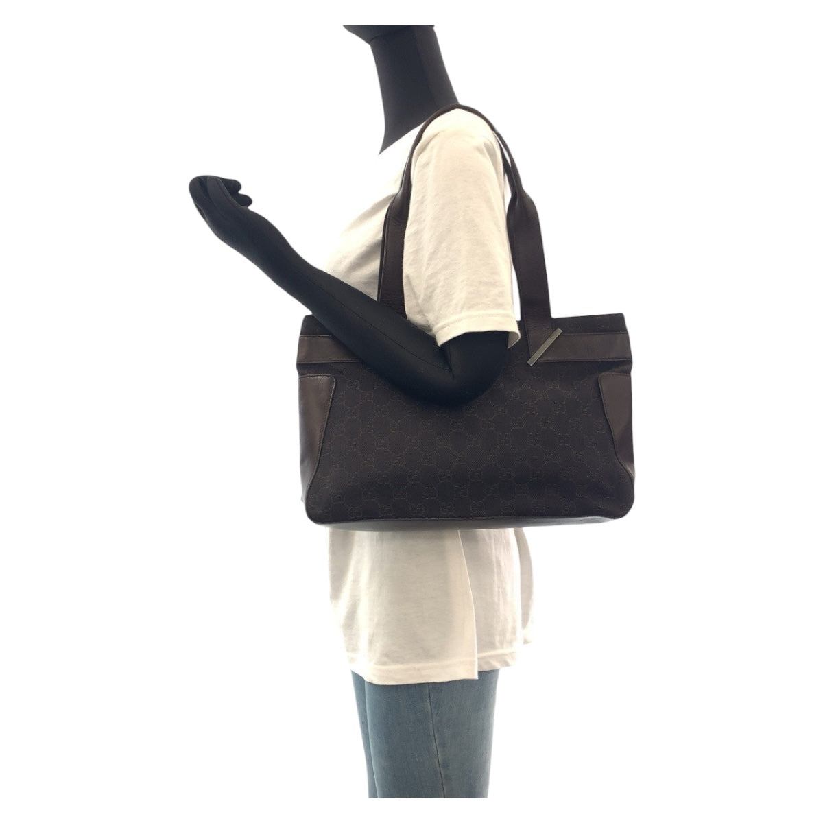 GUCCI Tote Bag 73983 GG canvas, leather Brown Tote Bag Shoulder Bag Women Used Authentic