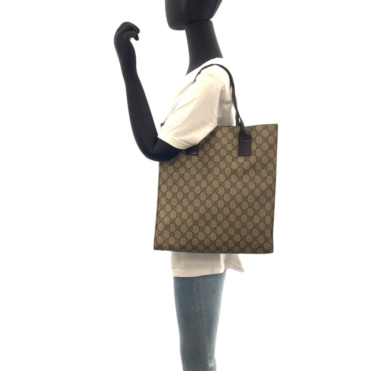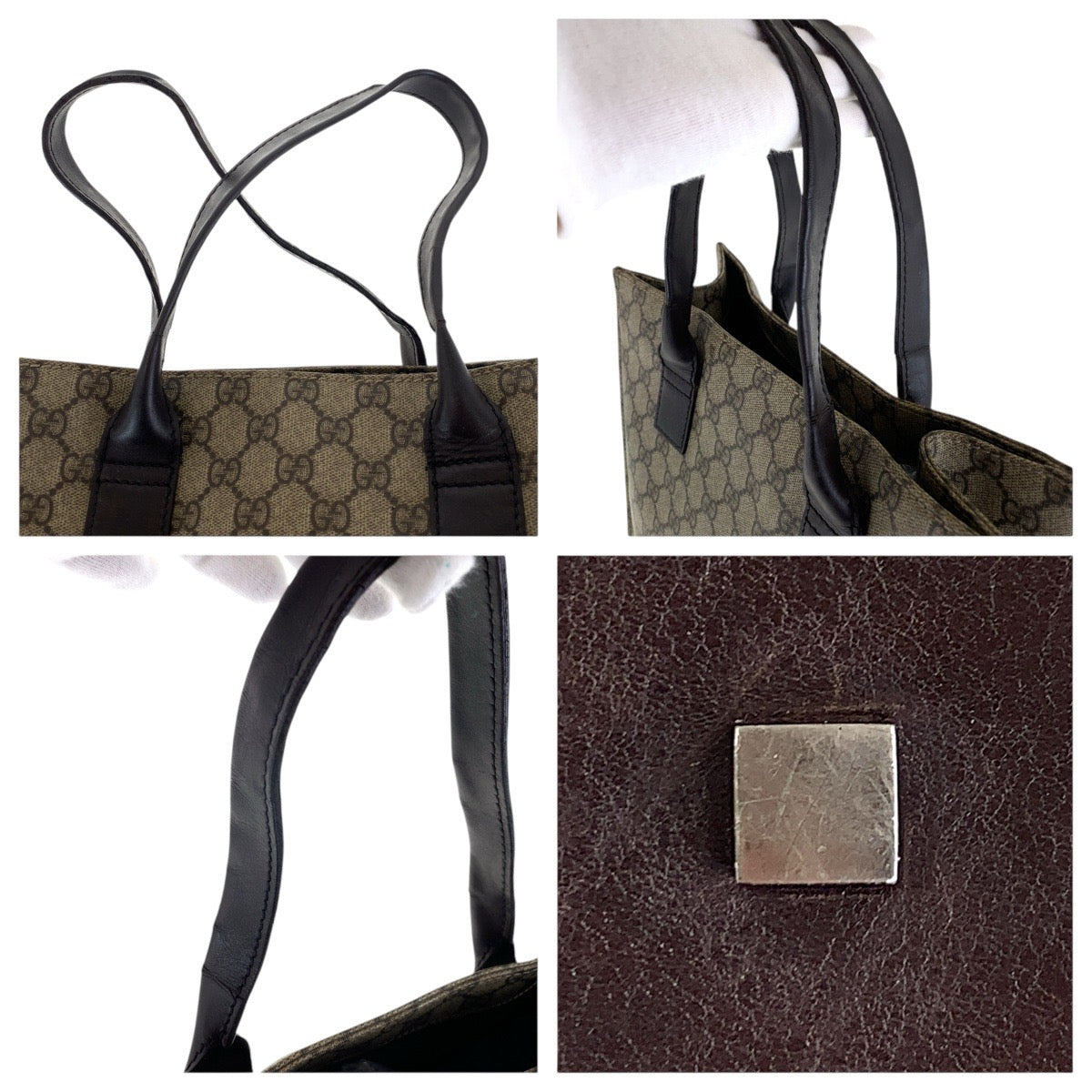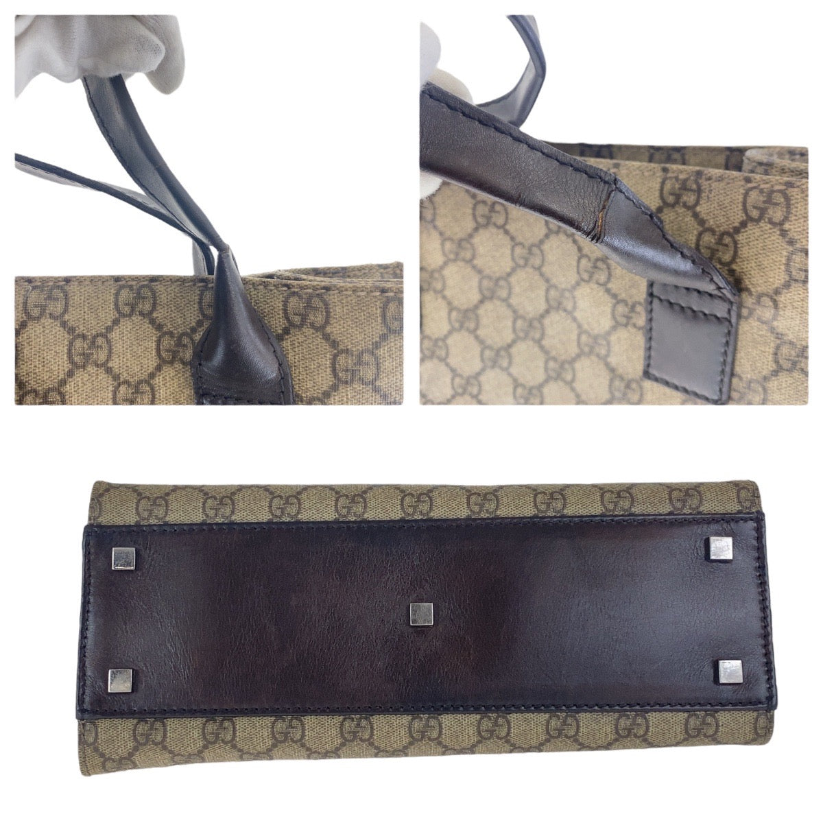 GUCCI Tote Bag 91249 GG Supreme Canvas Brown Silver Metal