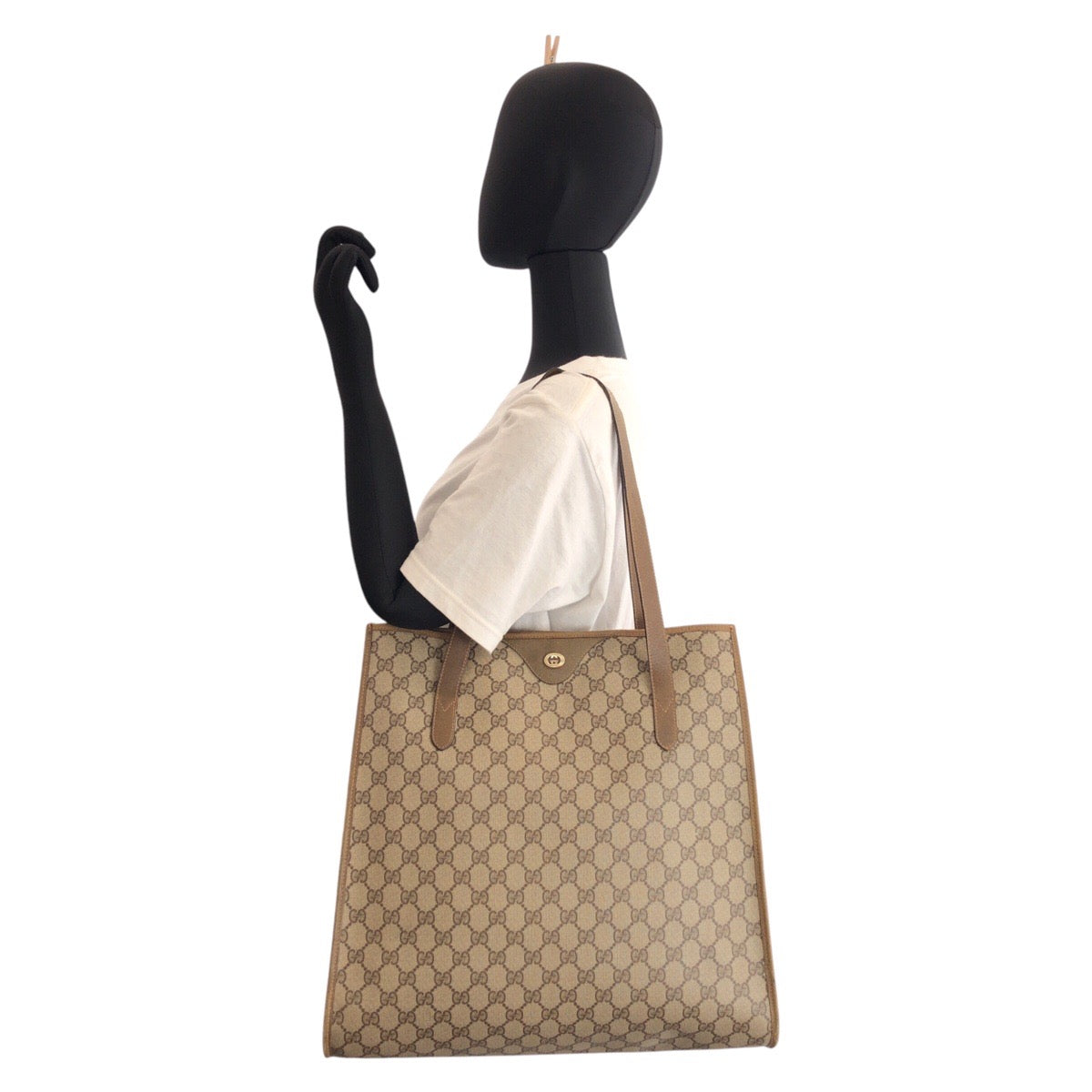 GUCCI Tote Bag 92 02 998 GG Supreme canvas, leather Beige Gold Metal Tote Bag Shoulder Bag Old Gucci Women(Unisex) Used Authentic