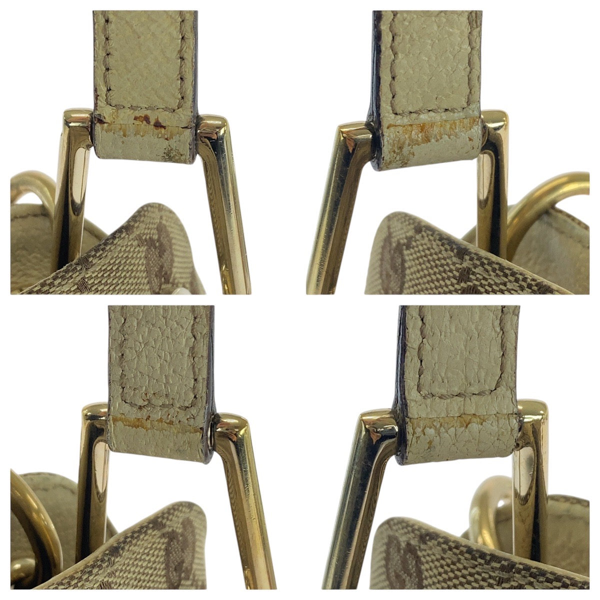 GUCCI Tote Bag GG canvas, leather Beige Ivory Gold Metal Tote Bag Shoulder Bag Women Used Authentic