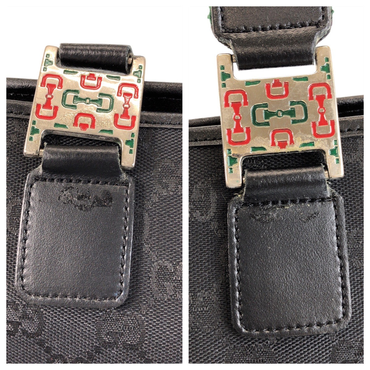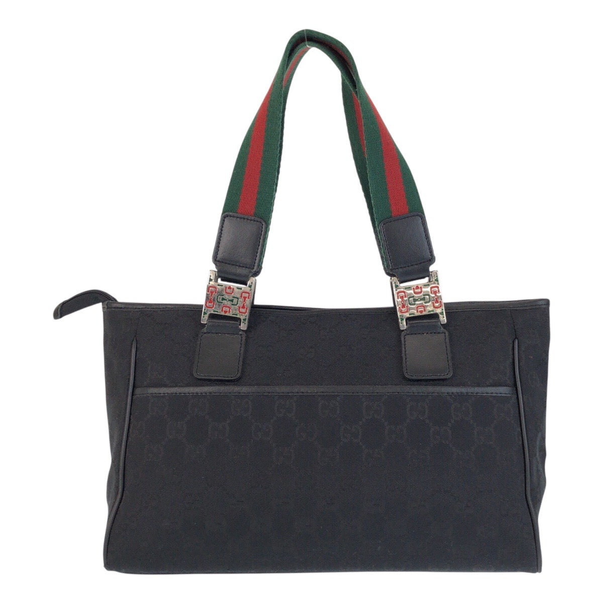 GUCCI Tote Bag GG canvas, leather black Tote Bag Shoulder Bag Sherry line Women Used Authentic
