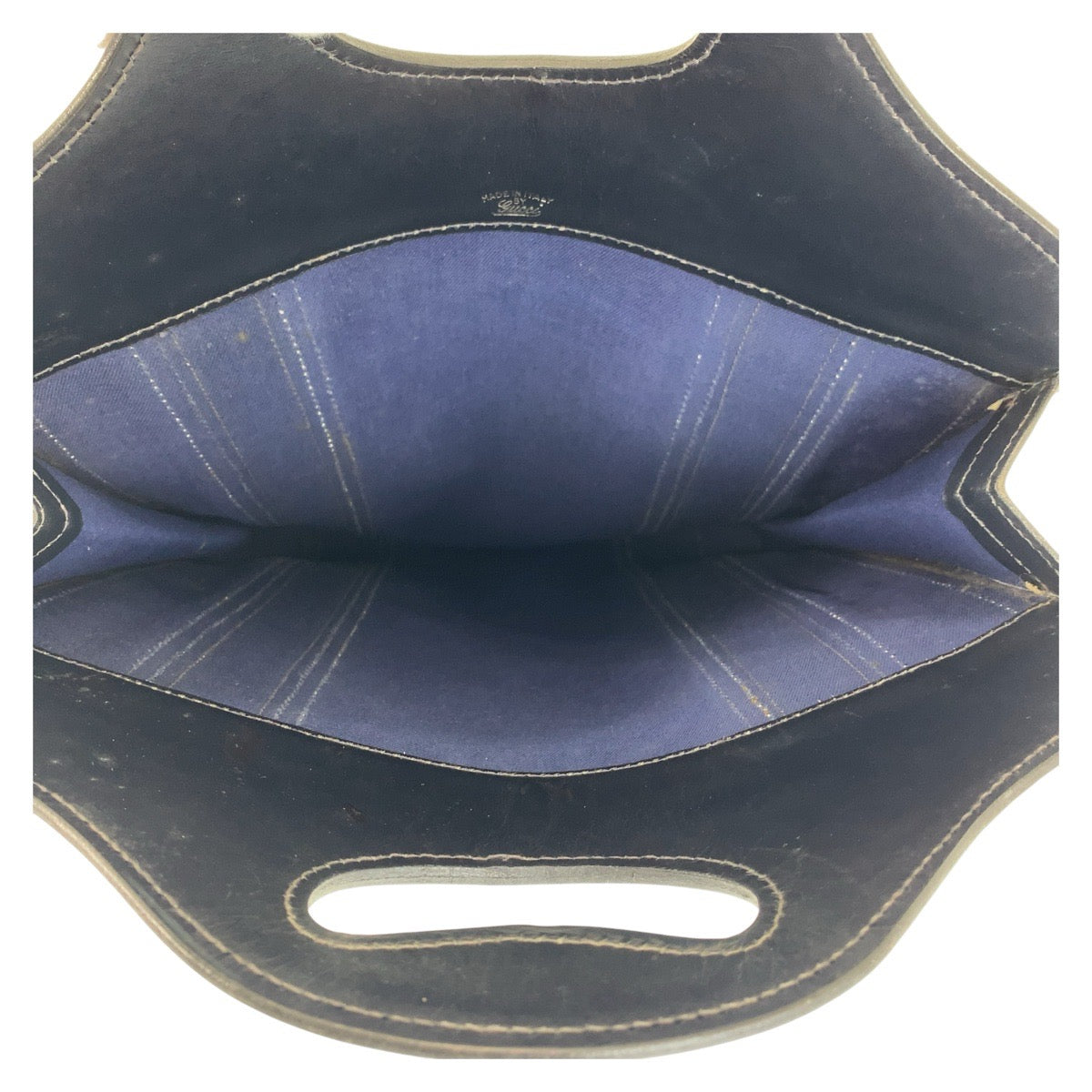 GUCCI Tote Bag GG Supreme canvas, leather Navy gray Tote Bag Sherry line Women Used Authentic