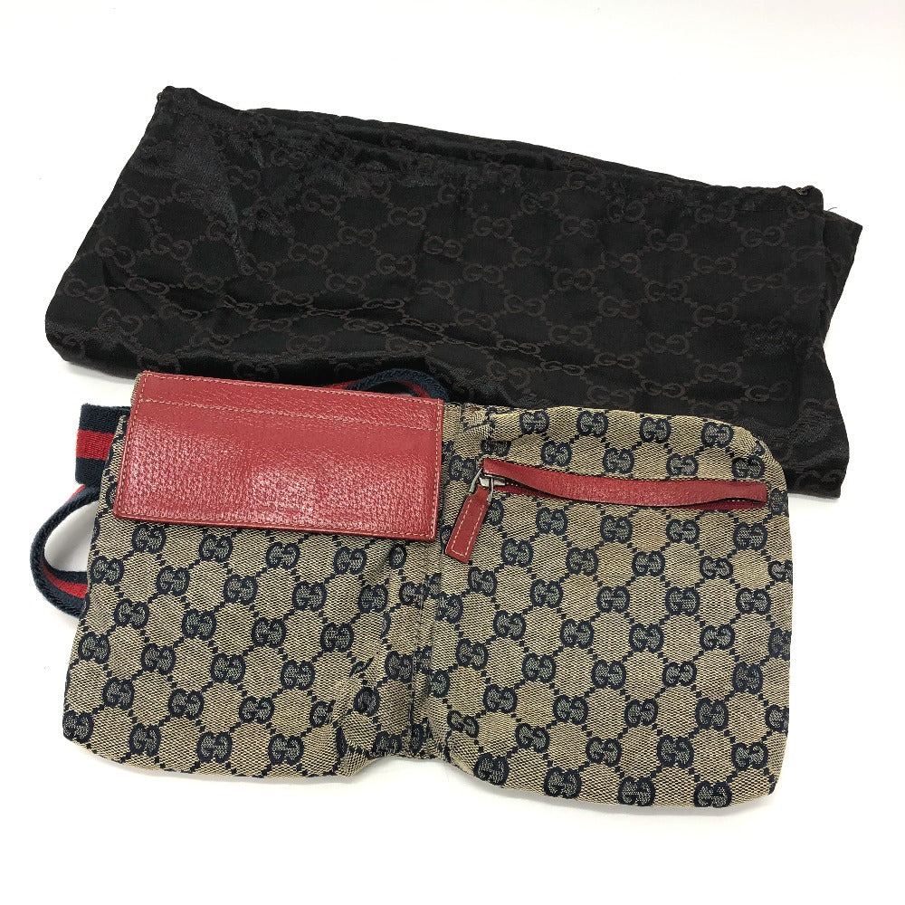 GUCCI Waist bag 28566 GG canvas / leather Red GG/logo Sling bag mens Used Authentic