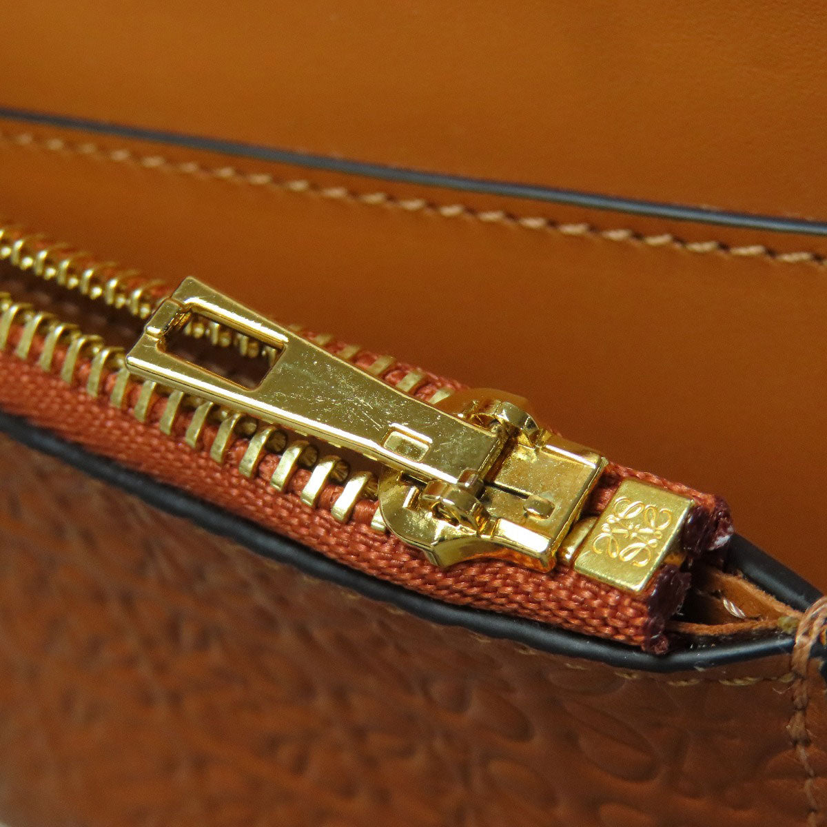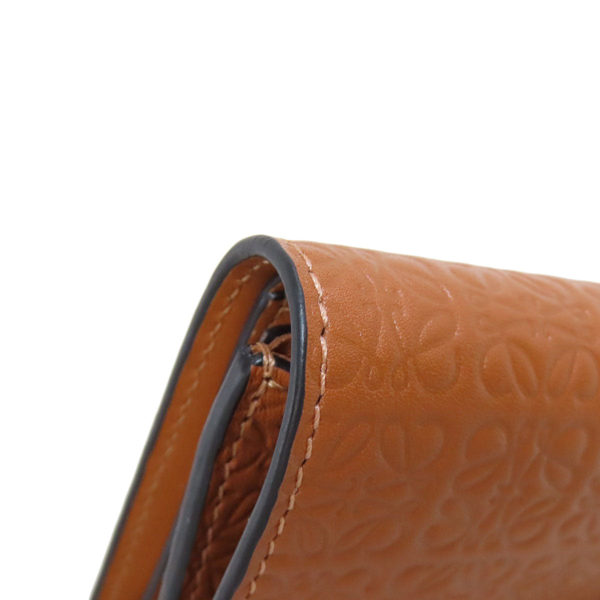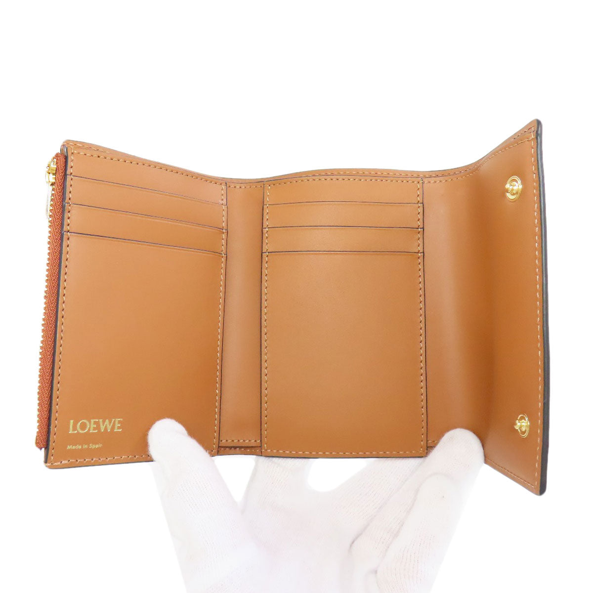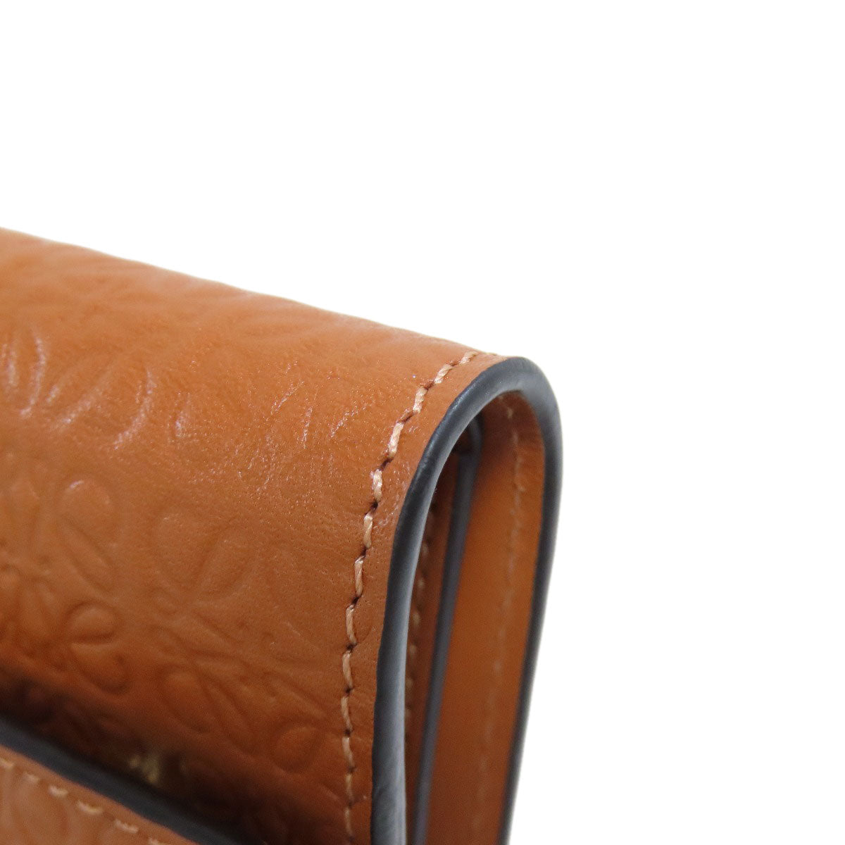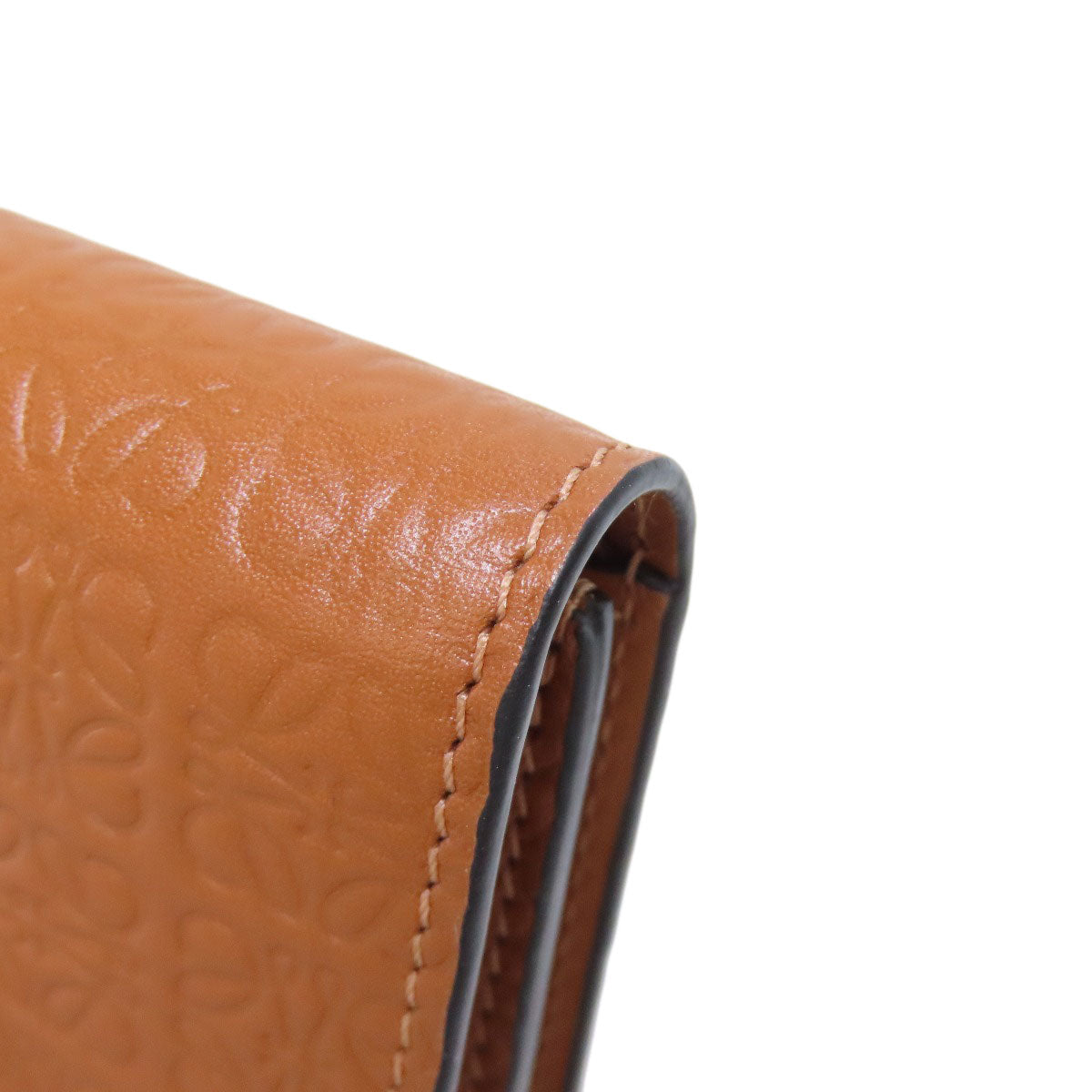 LOEWE Bifold Wallet Calfskin Brown Repeat Bar Tikal Wallet Small Women Used Authentic