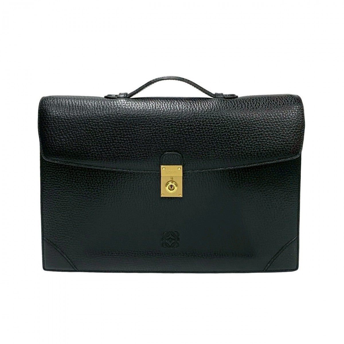 LOEWE Business bag leather black Anagram logo Metal mens Used Authentic