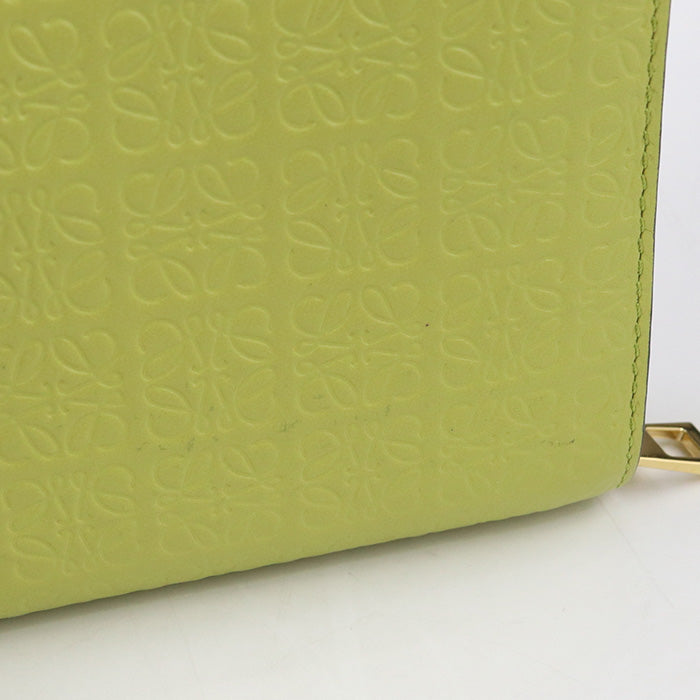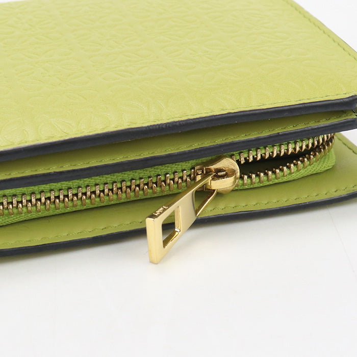 LOEWE C499Z41X04 4081 Bi-fold wallet Repeat anagram Compact zip wallet embossed silk calf Lime Yellow Women