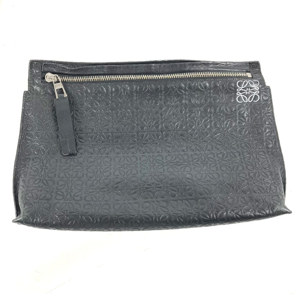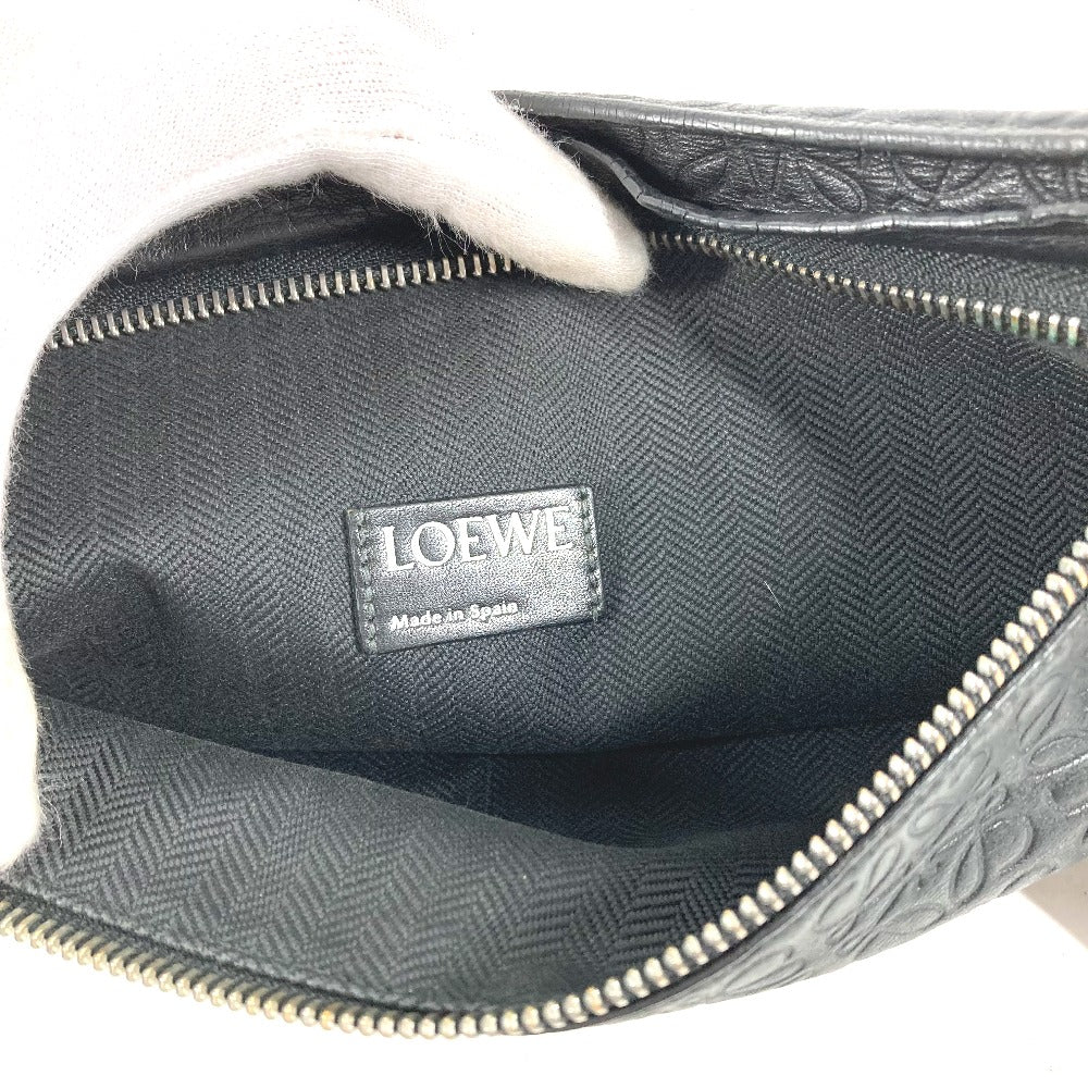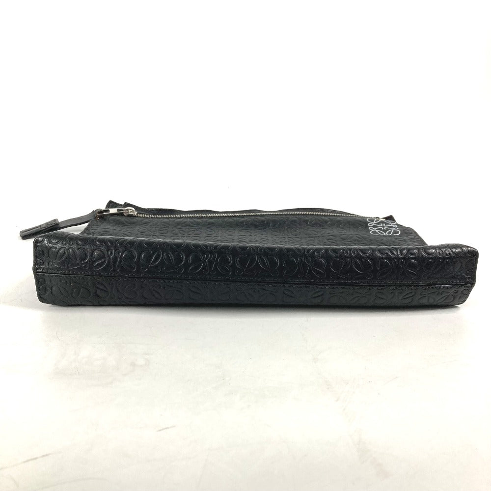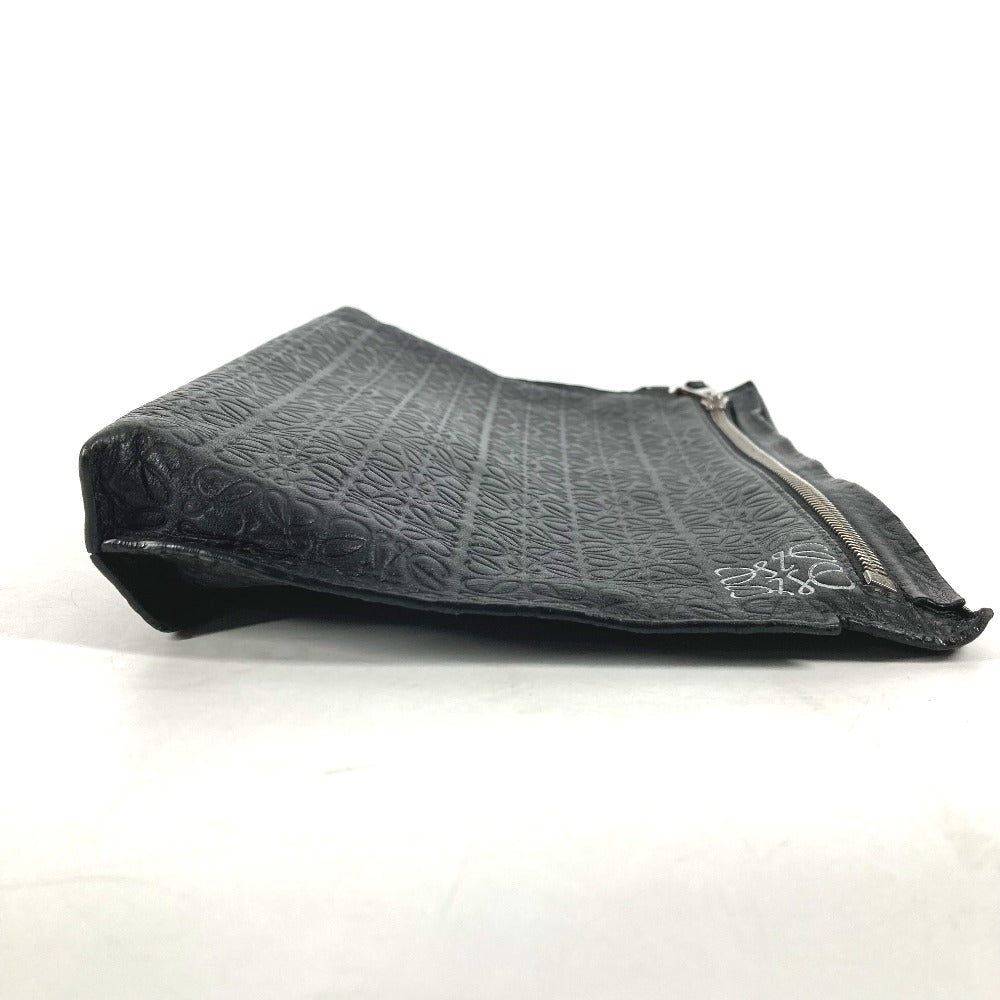 LOEWE Clutch bag leather black pouch bag Anagram T Pouch mens Used Authentic