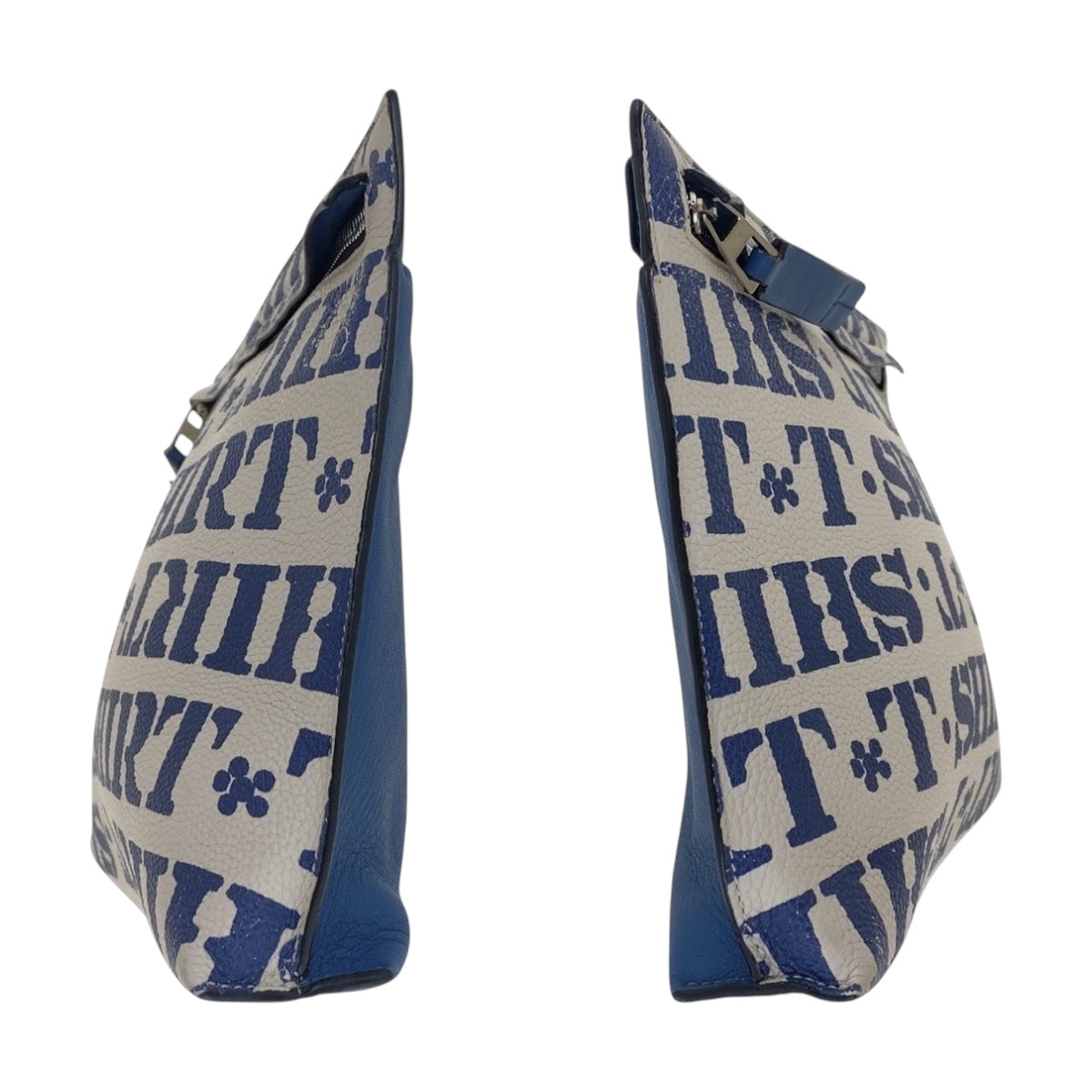 LOEWE Clutch bag leather Blue White SilverMetal Clutch bag business bag T pouch Women Used Authentic