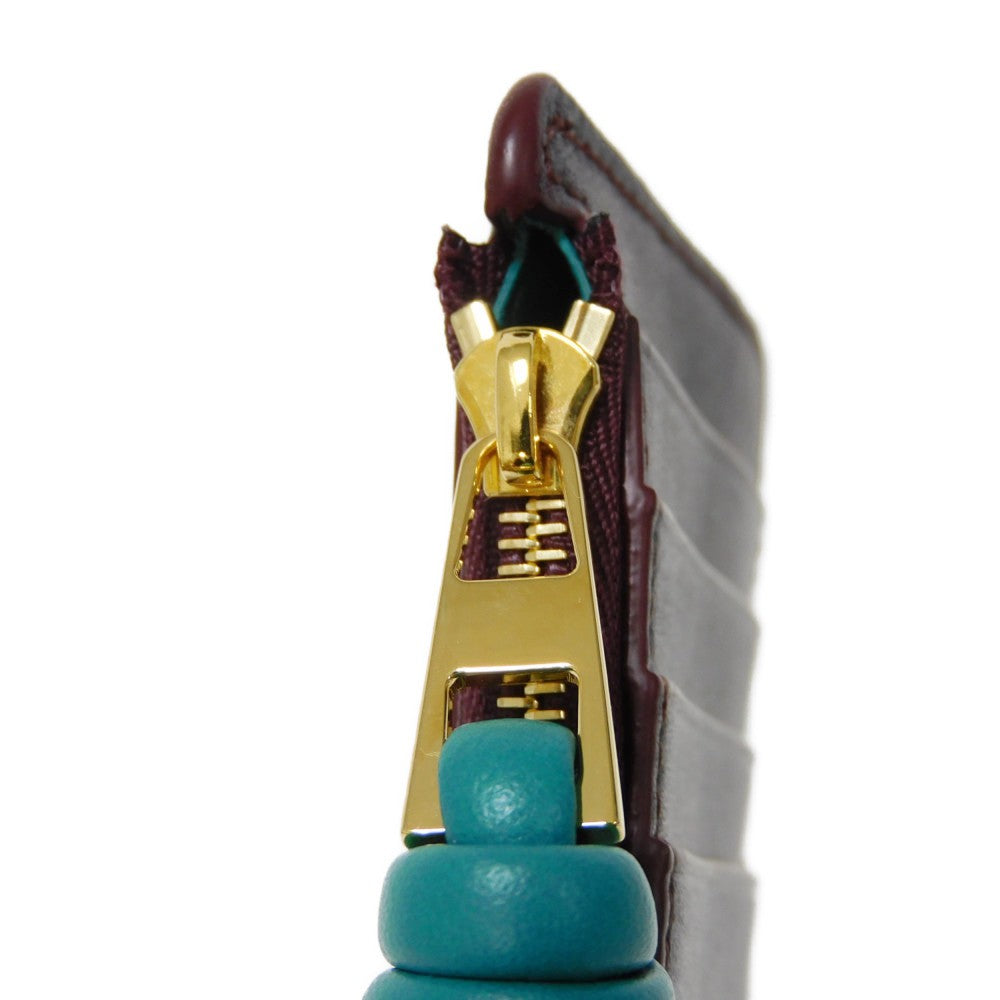 LOEWE Coin case CEM1Z40X02 shiny napa calf Burgundy Current L-shaped zipper Bicolor Emerald Unused logo Knot Coin Card Holder unisex(Unisex) Used Authentic