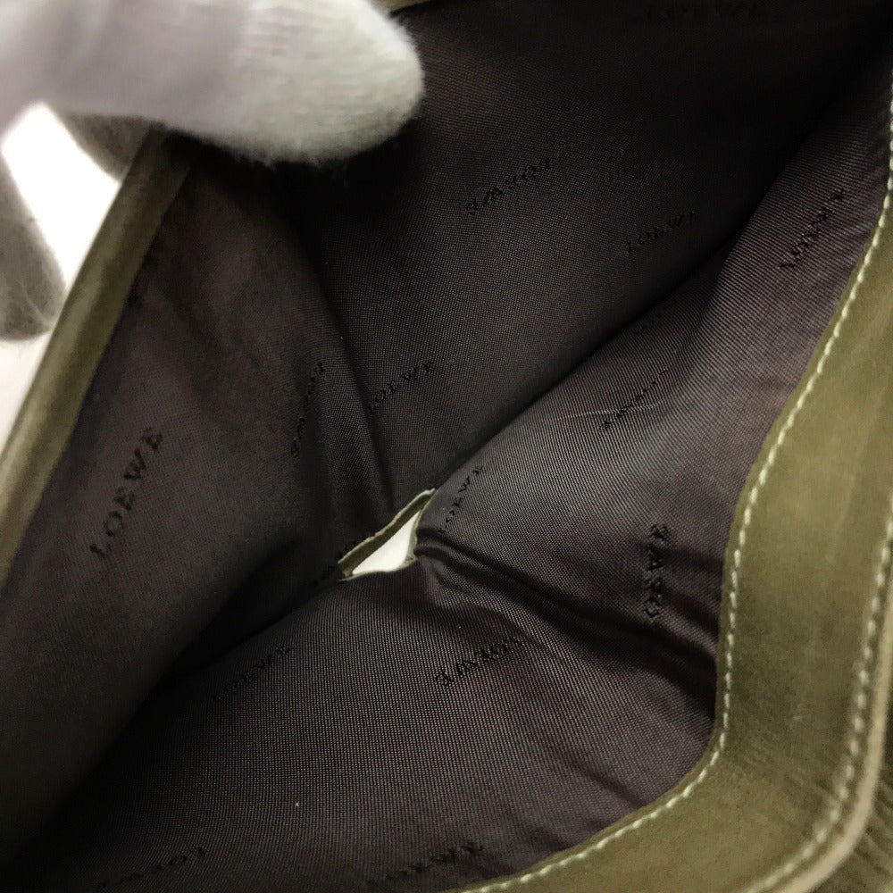 LOEWE Folded wallet lambskin khaki W Hook Wallet Short wallet with snap fastener Women Used Authentic