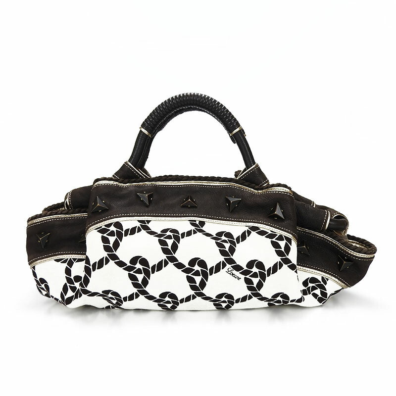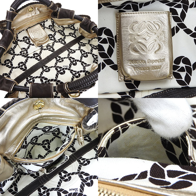 LOEWE Handbag Leather, Canvas Dark brown anagram Nappa Aire Women Used Authentic