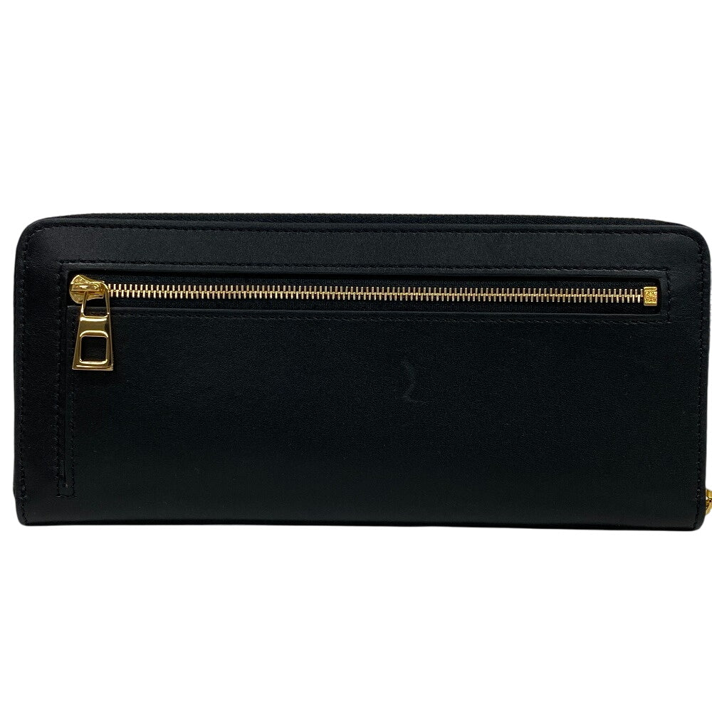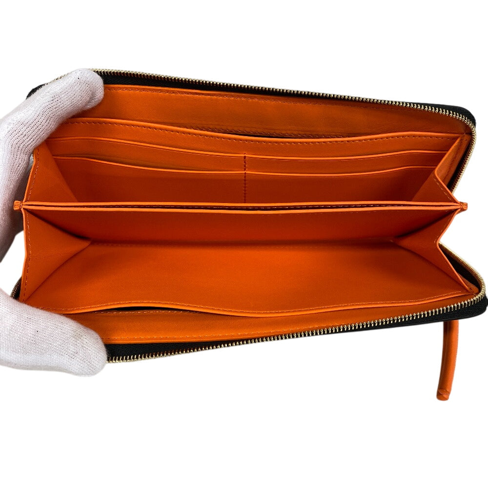 LOEWE Long Wallet Purse leather black Zip Around knot Women Used Authentic