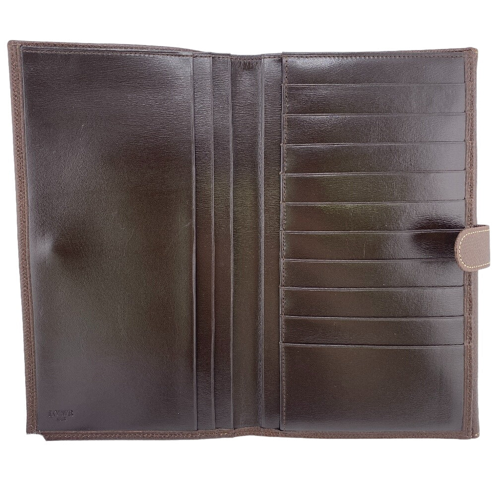LOEWE Long Wallet Purse leather Brown W Hook Wallet Vintage mens Used Authentic