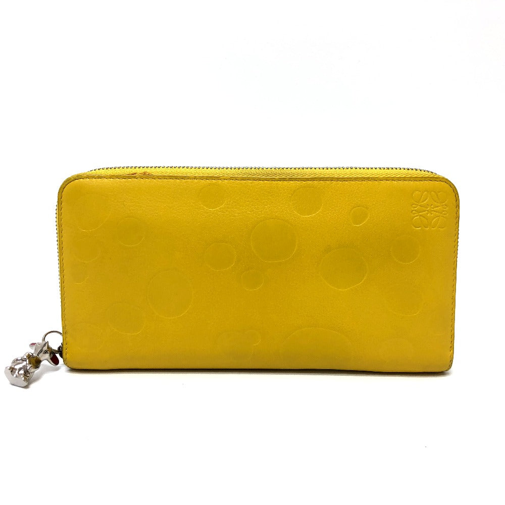 LOEWE Long Wallet Purse leather yellow anagram Women Used Authentic