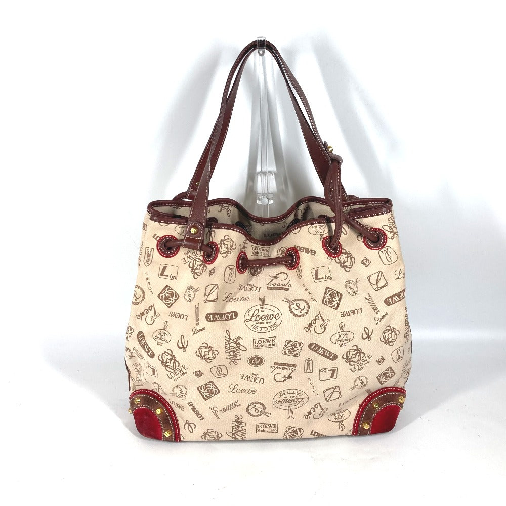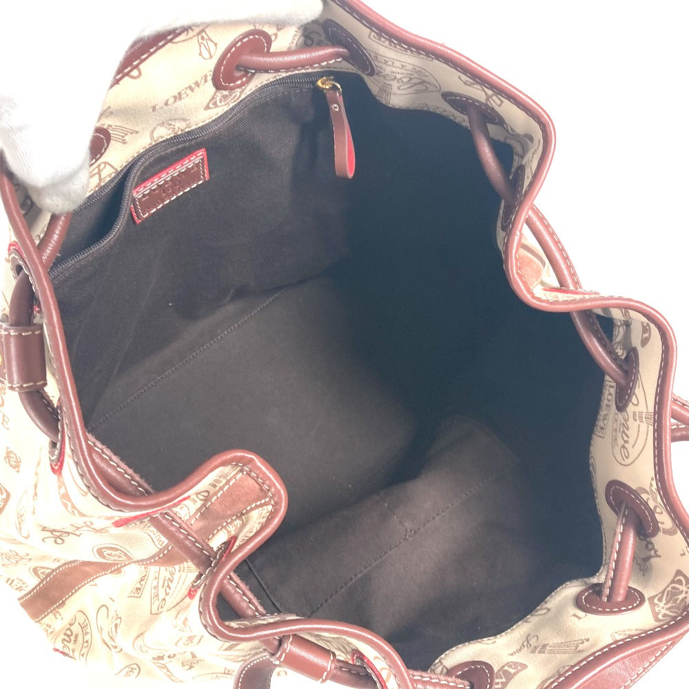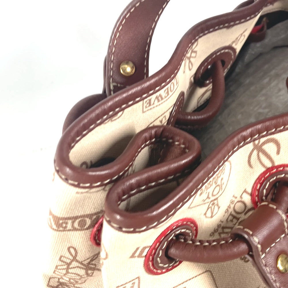 LOEWE Shoulder Bag Canvas / leather beige 160th anniversary logo anagram drawstring bag Women Used Authentic