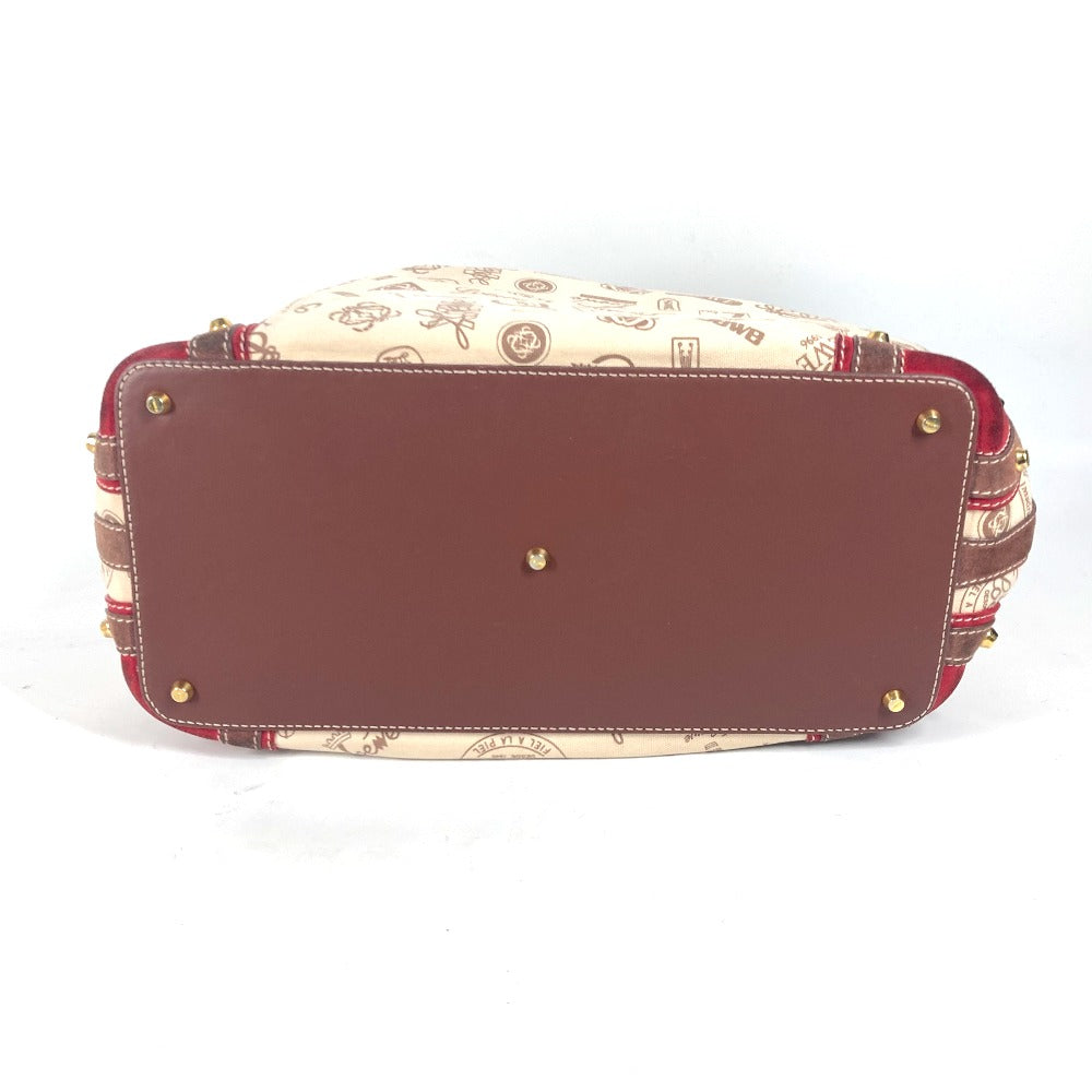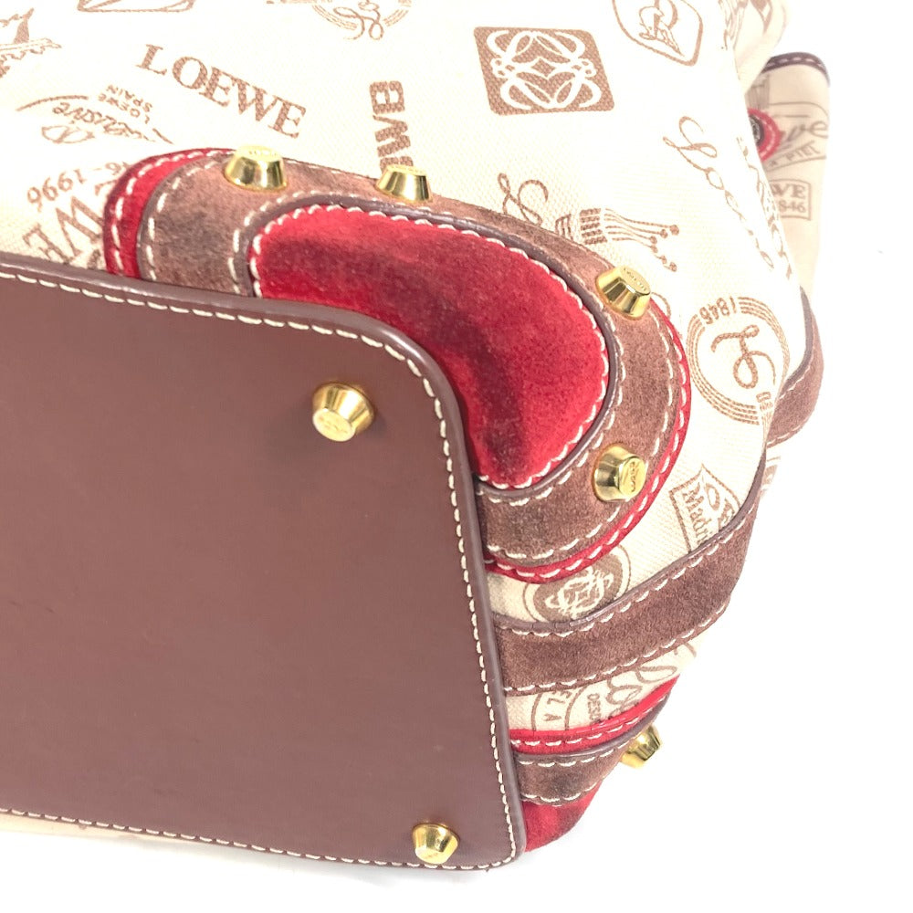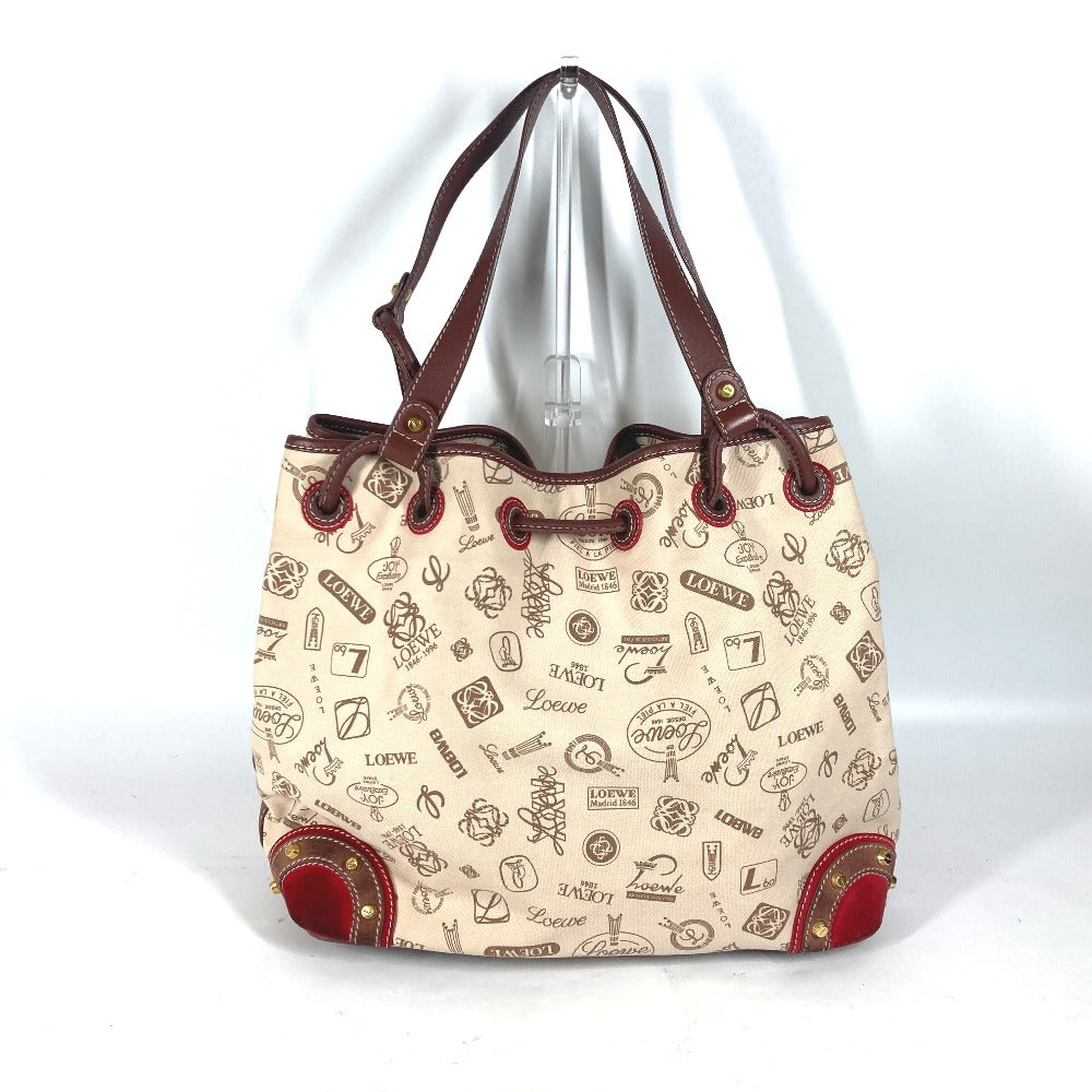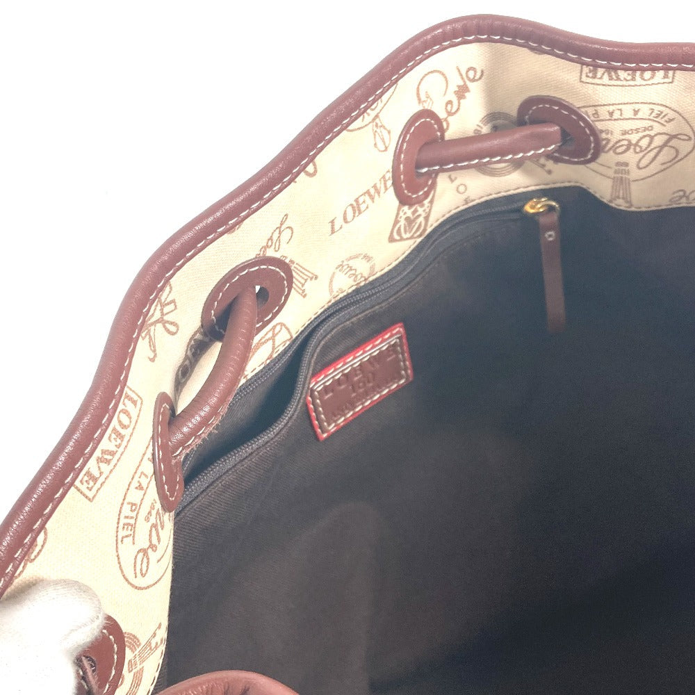 LOEWE Shoulder Bag Canvas / leather beige 160th anniversary logo anagram drawstring bag Women Used Authentic