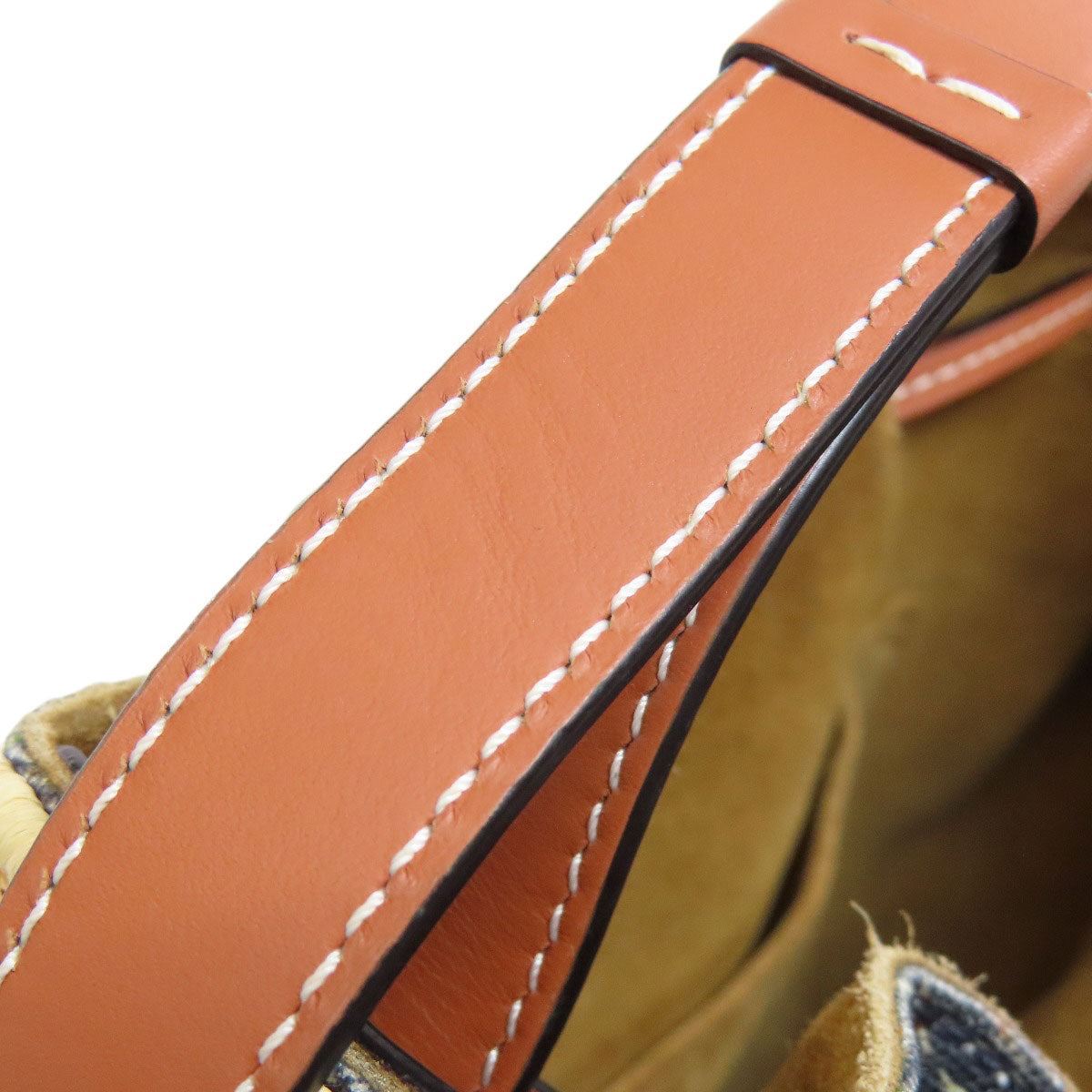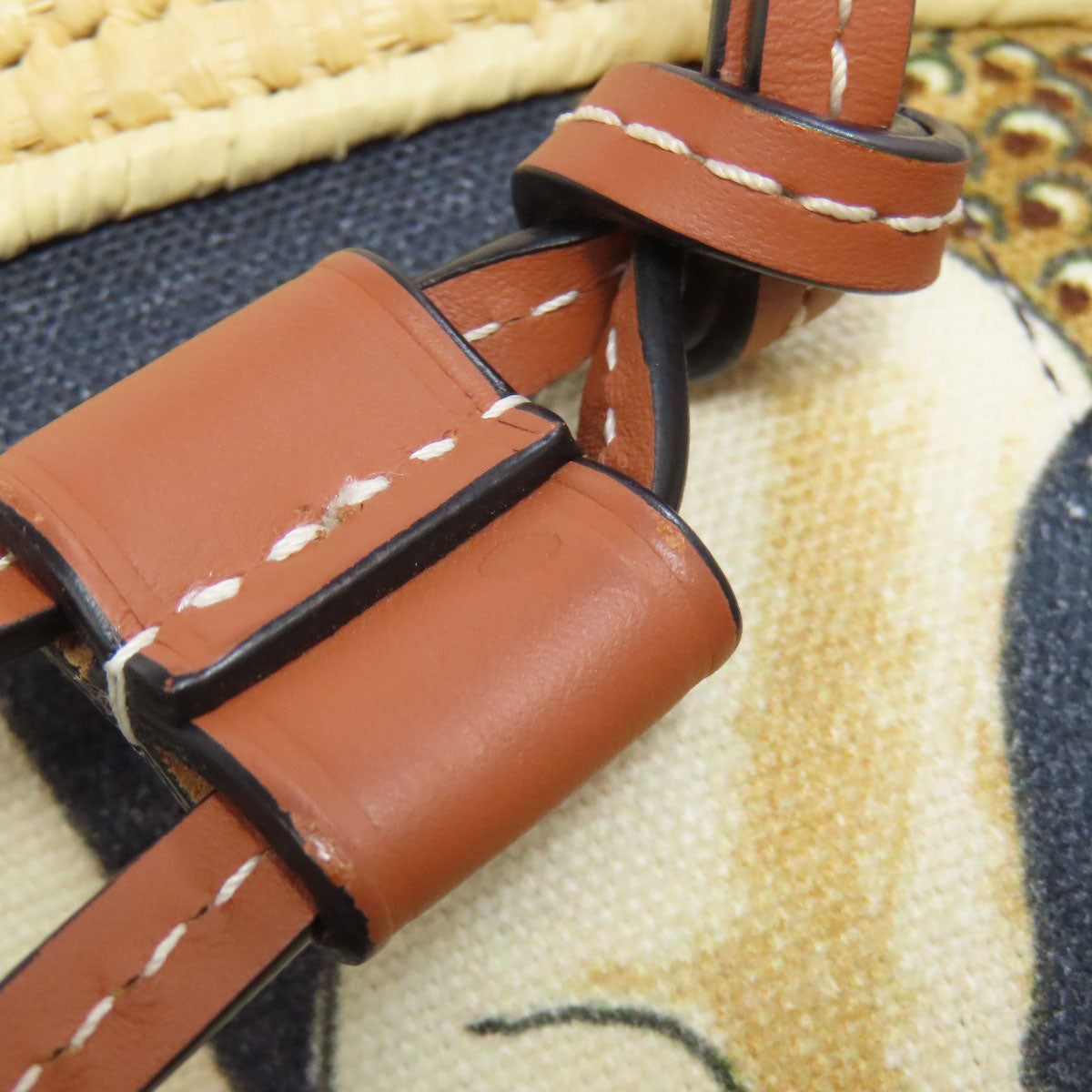 LOEWE Shoulder Bag Canvas, Raffia black Mermaid motif Women Used Authentic