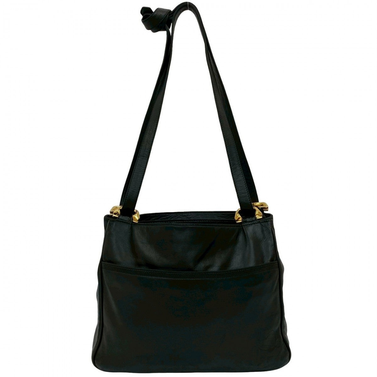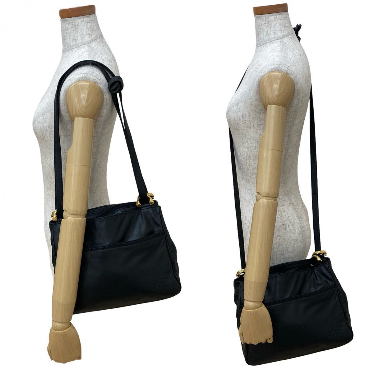 LOEWE Shoulder Bag leather black Anagram logo Women Used Authentic