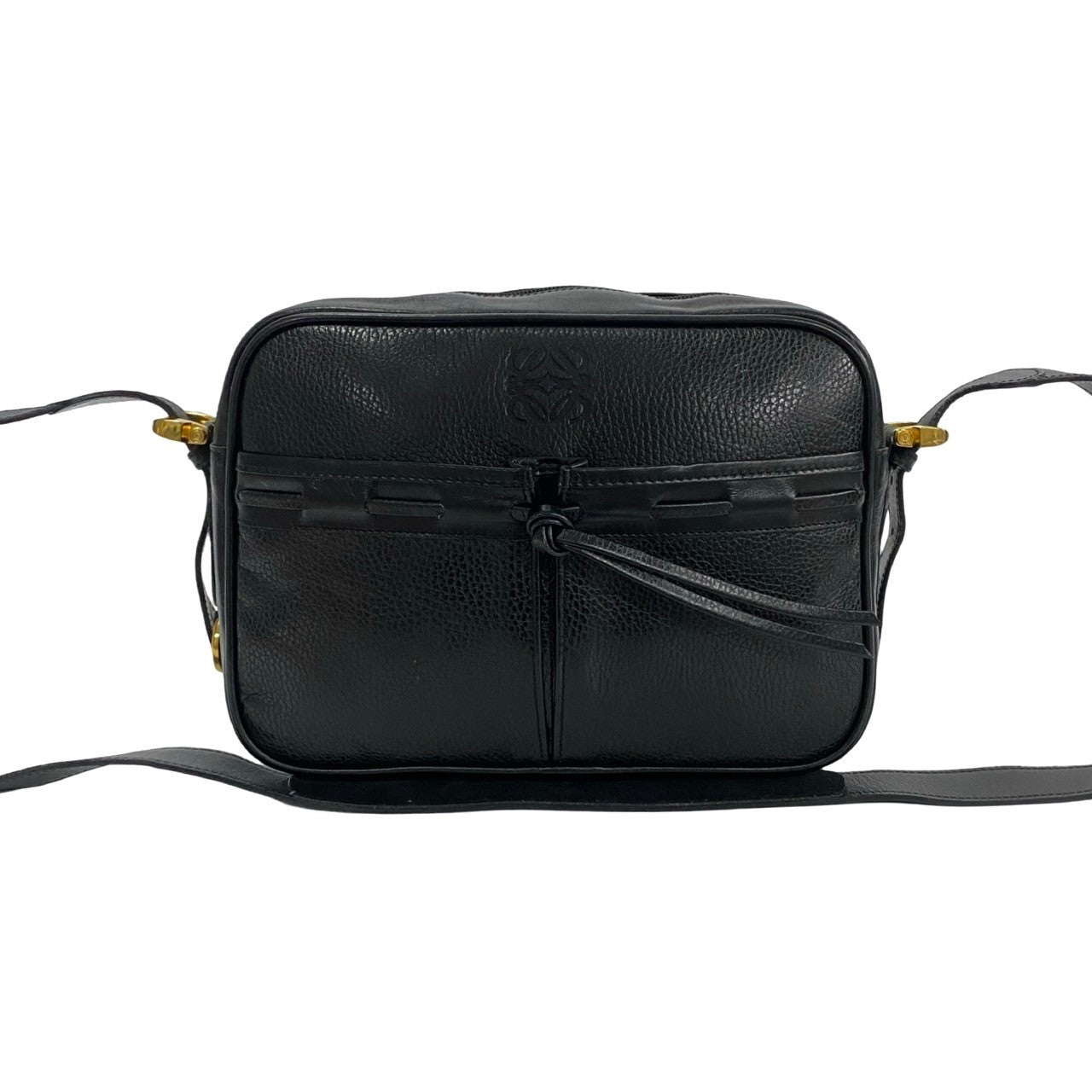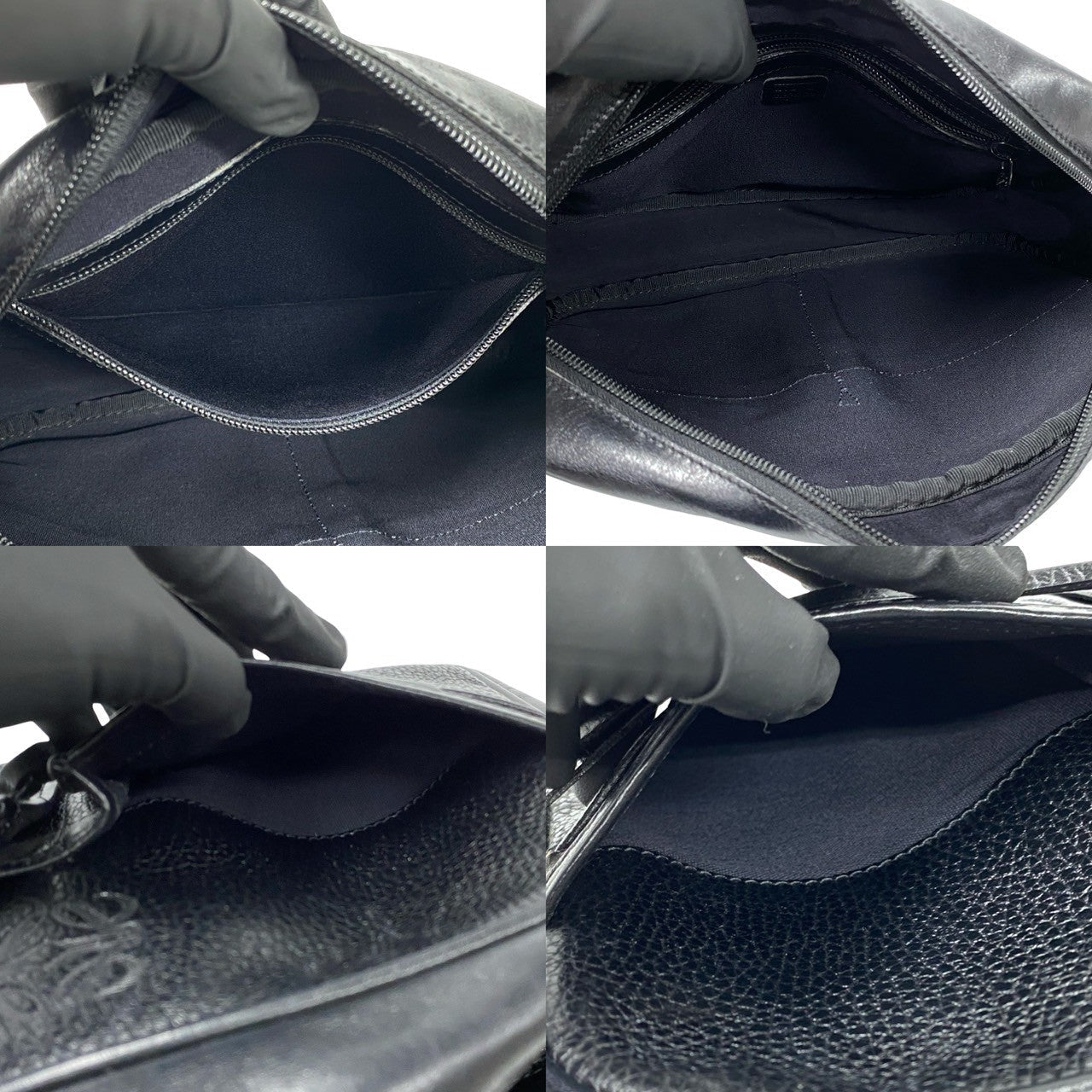 LOEWE Shoulder Bag leather black Anagram logo Women Used Authentic