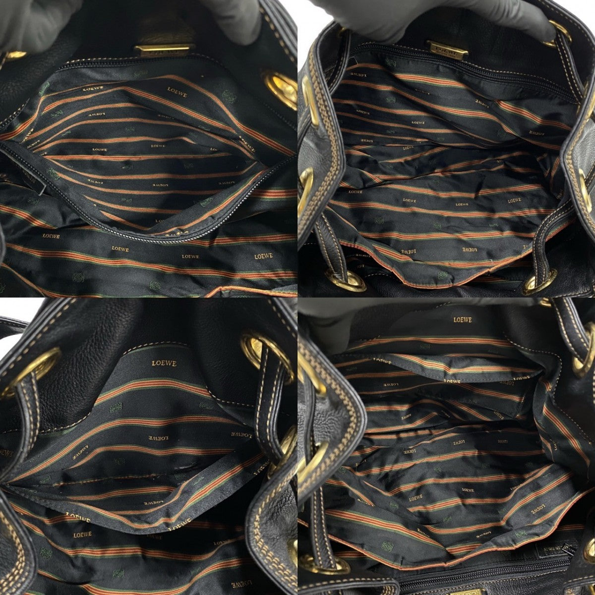 LOEWE Shoulder Bag leather black Anagram logo Women Used Authentic