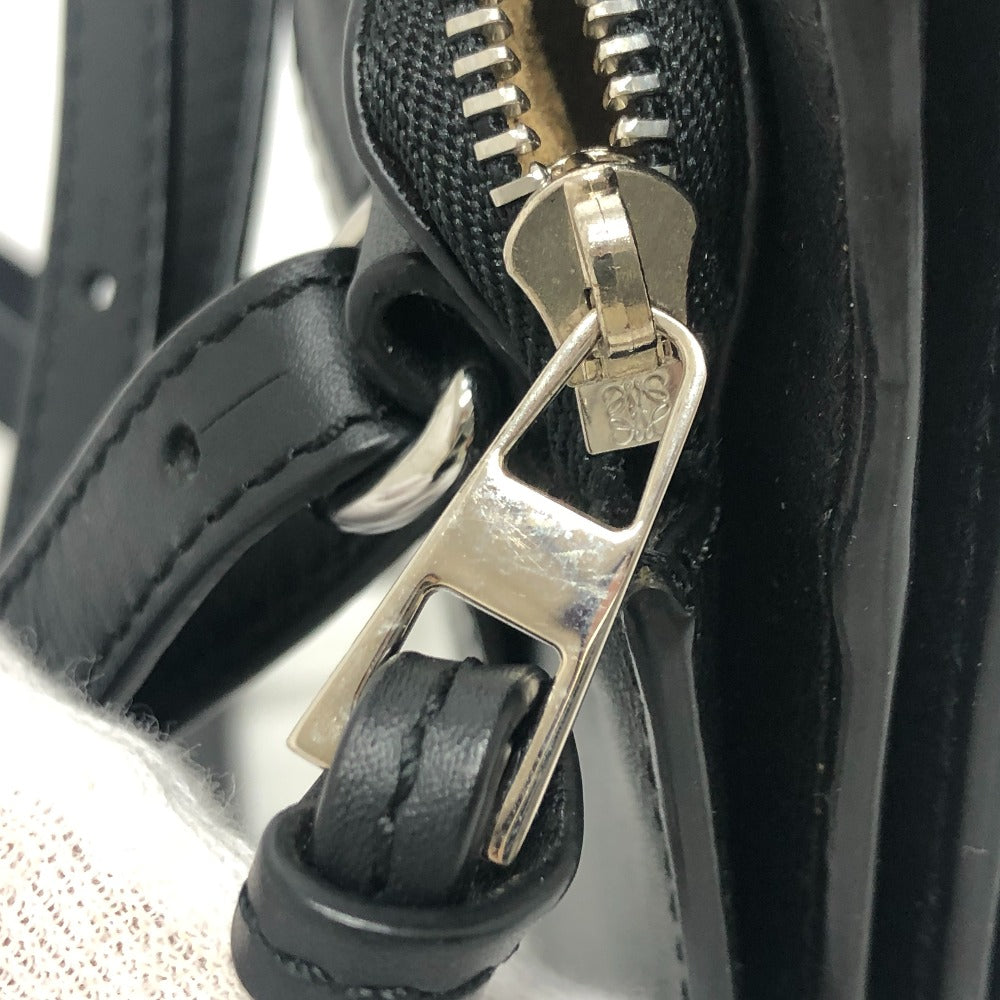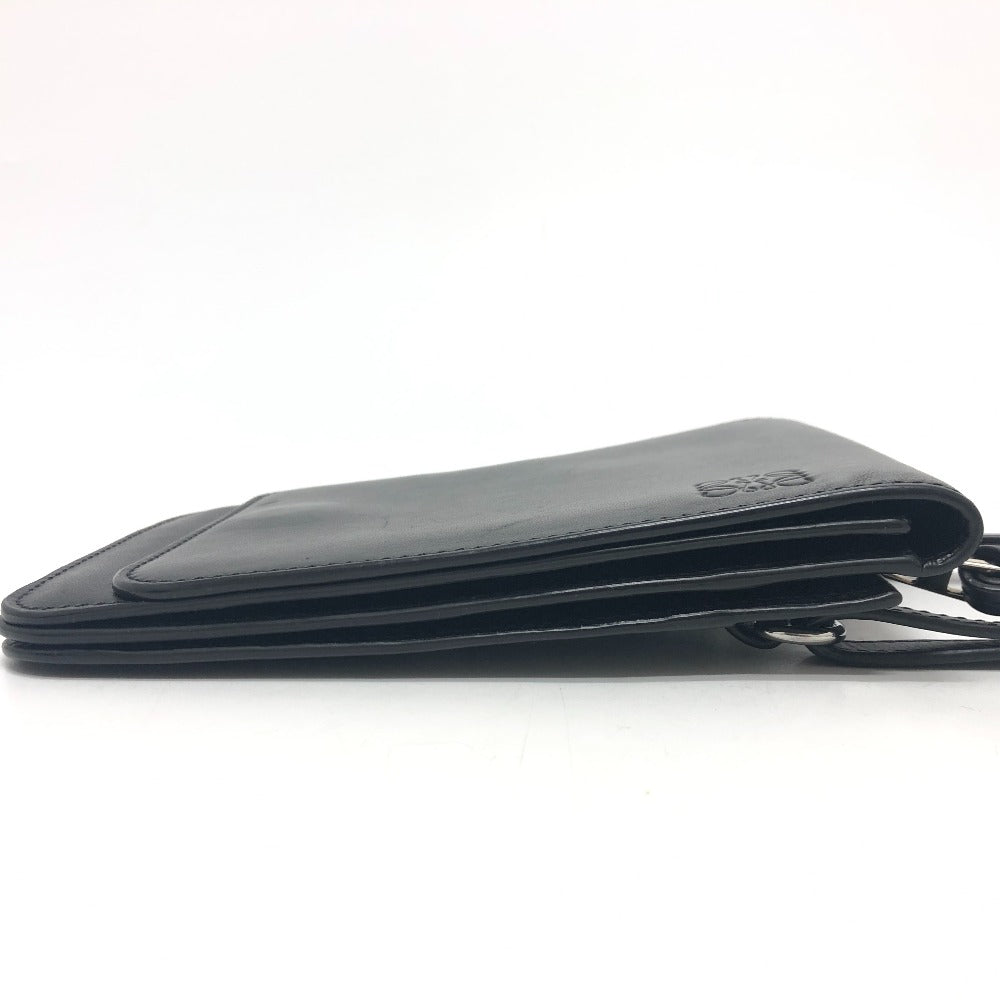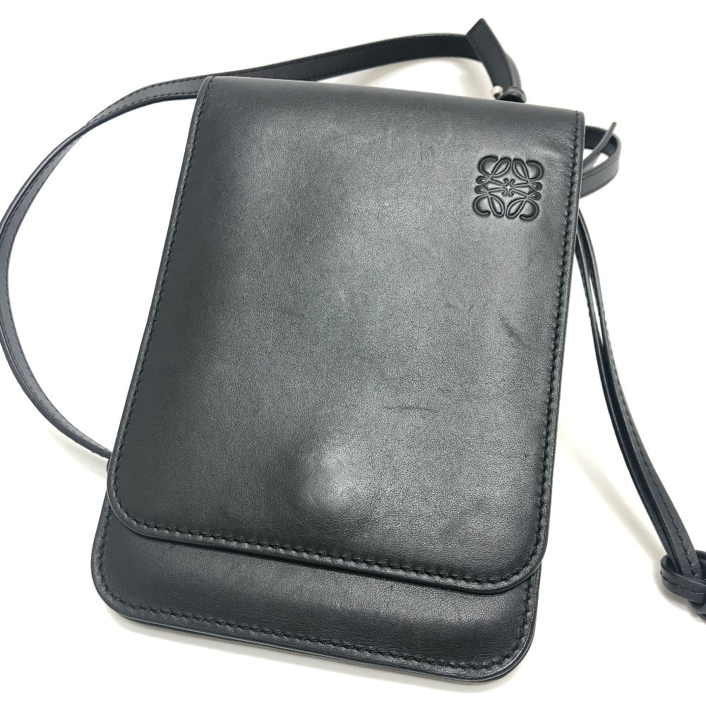 LOEWE Shoulder Bag leather black logo gusset flat Women Used Authentic