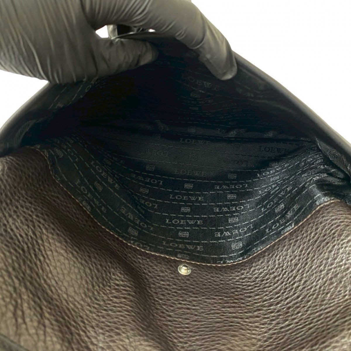 LOEWE Shoulder Bag Leather, Nylon Brown Anagram logo Women Used Authentic