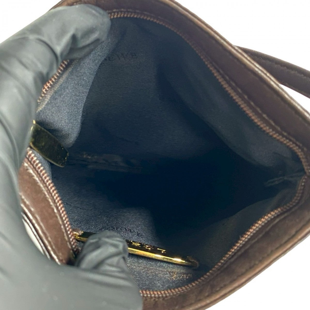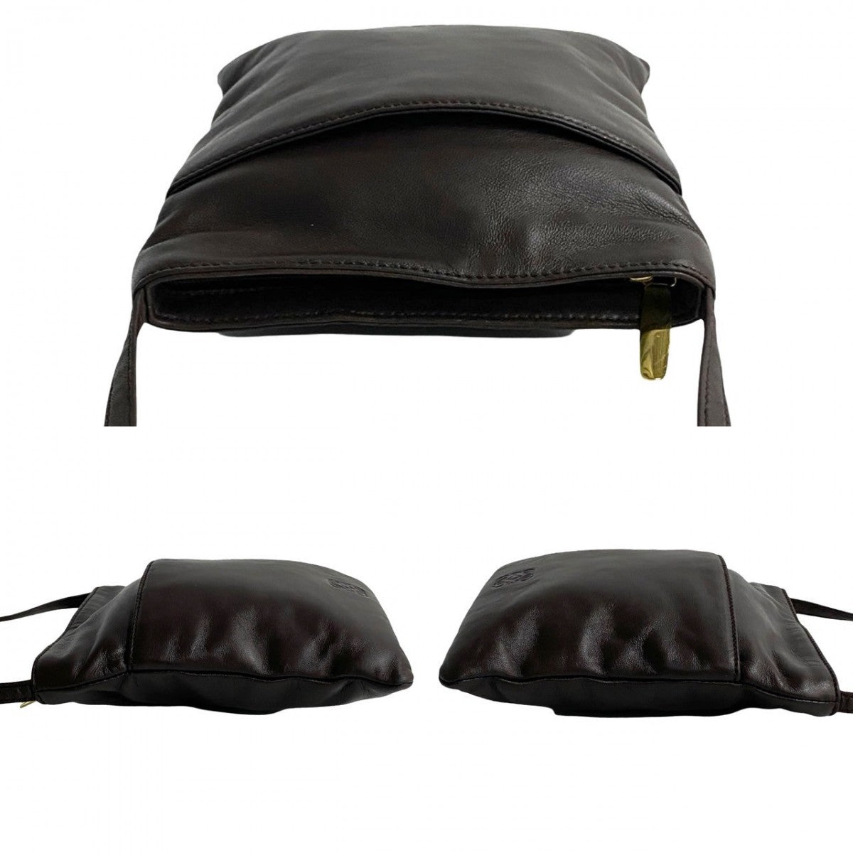 LOEWE Shoulder Bag leather Brown Anagram logo Women Used Authentic