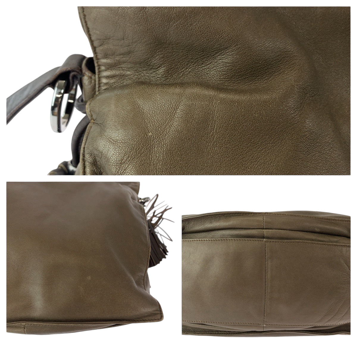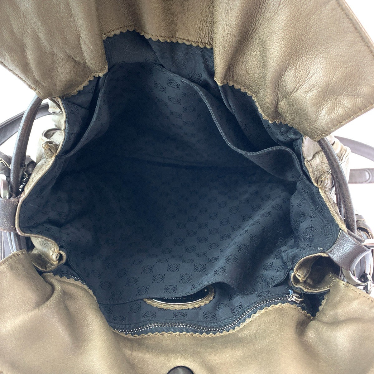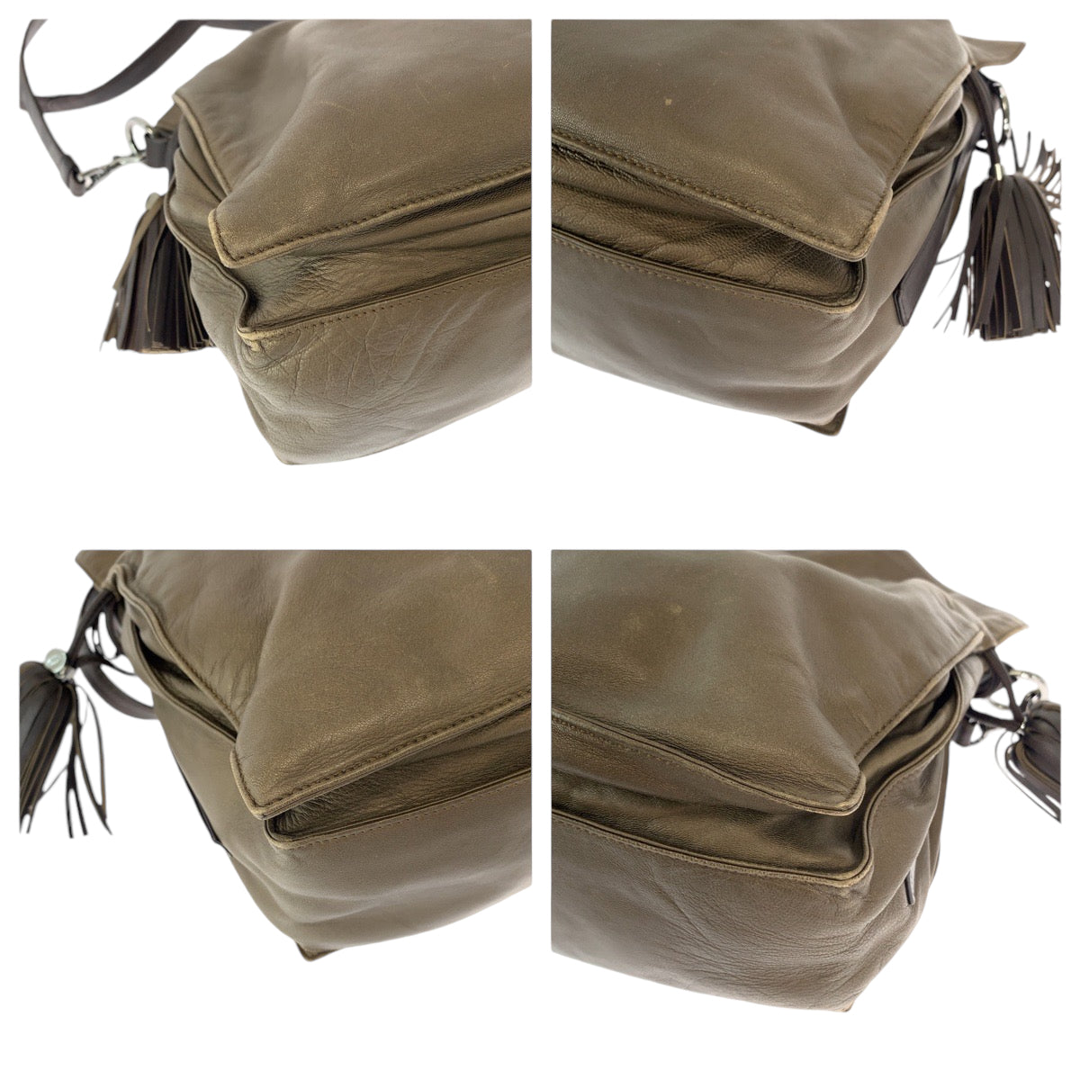 LOEWE Shoulder Bag leather Brown Silver Metal Shoulder Bag Crossbody Pochette Flamenco Anag Lamb Women Used Authentic