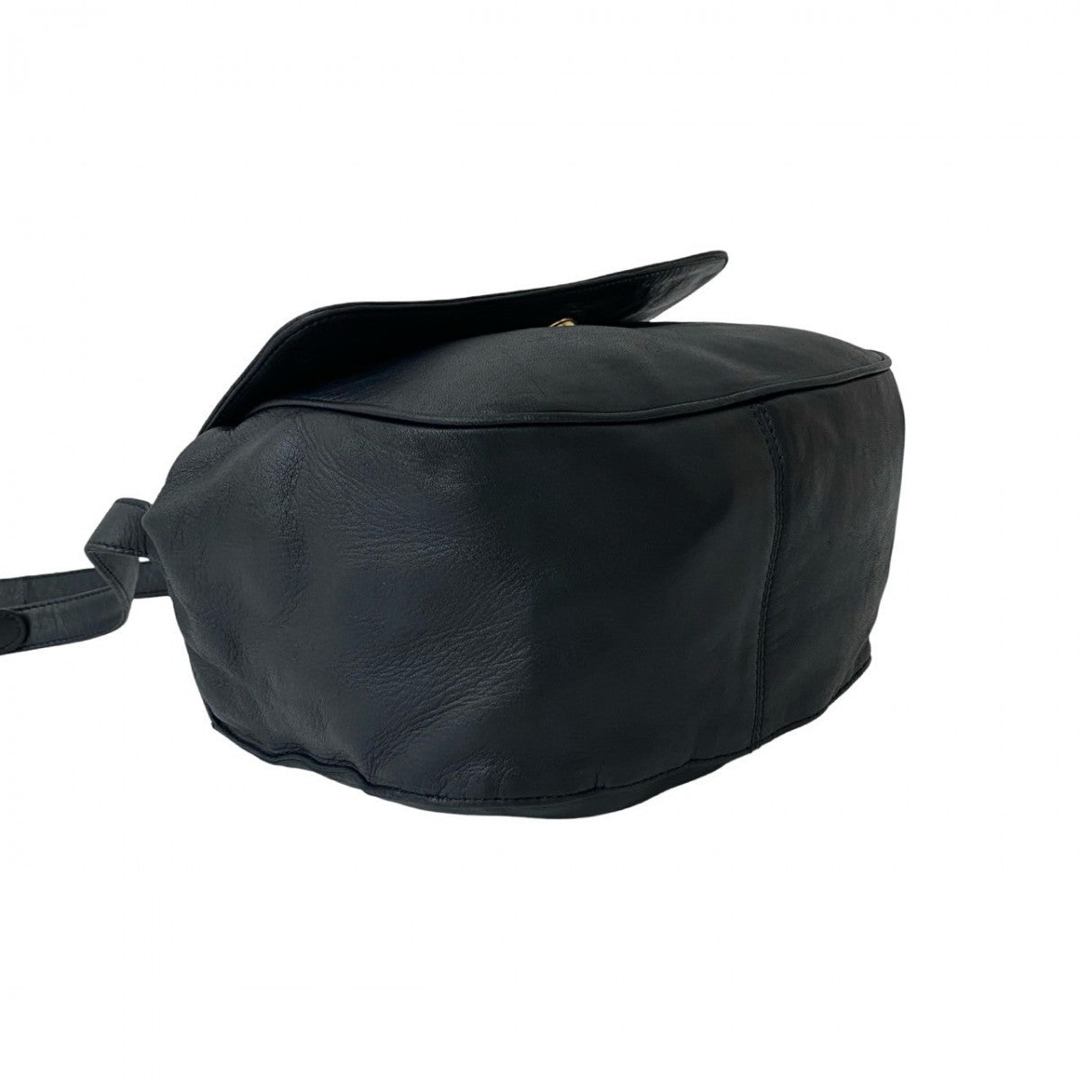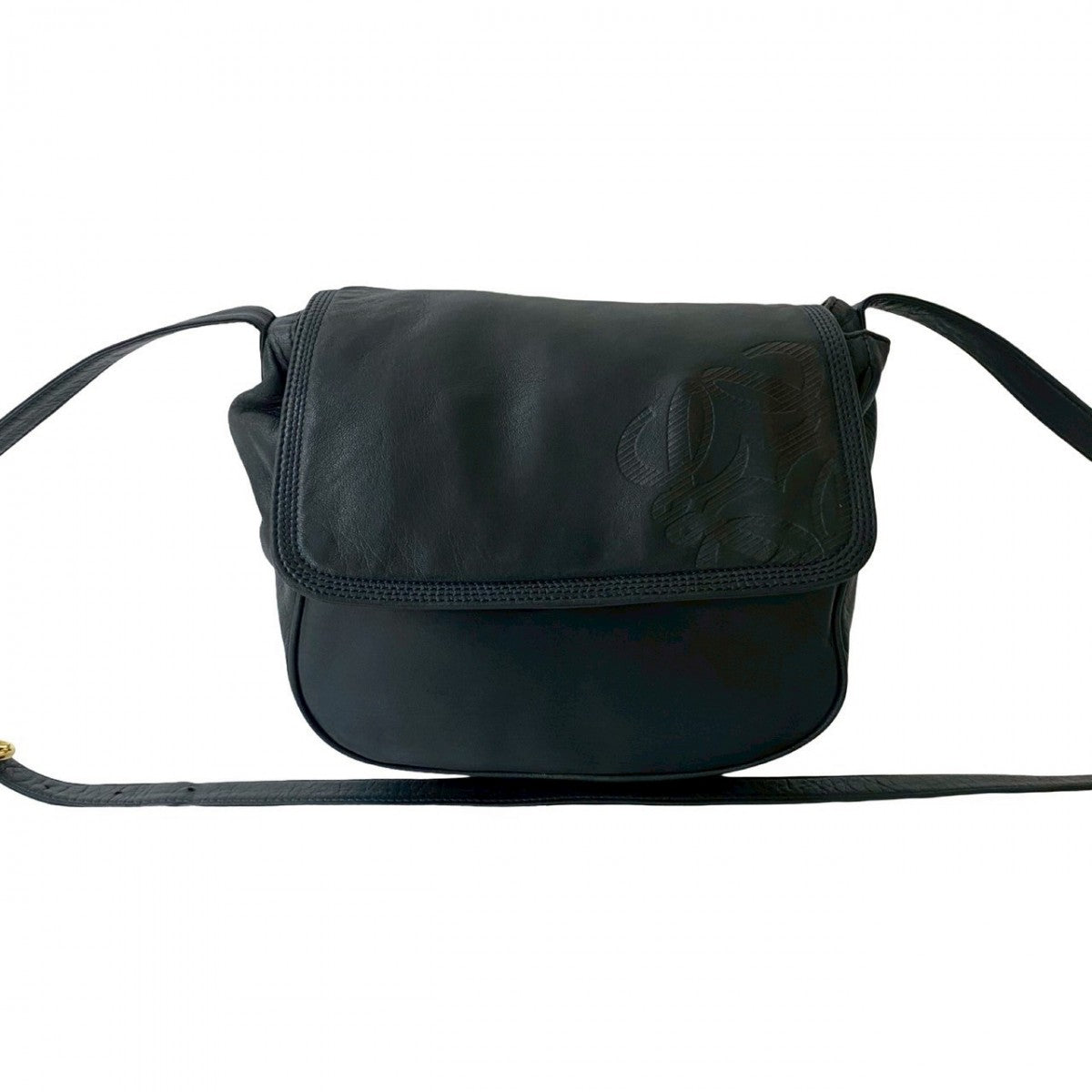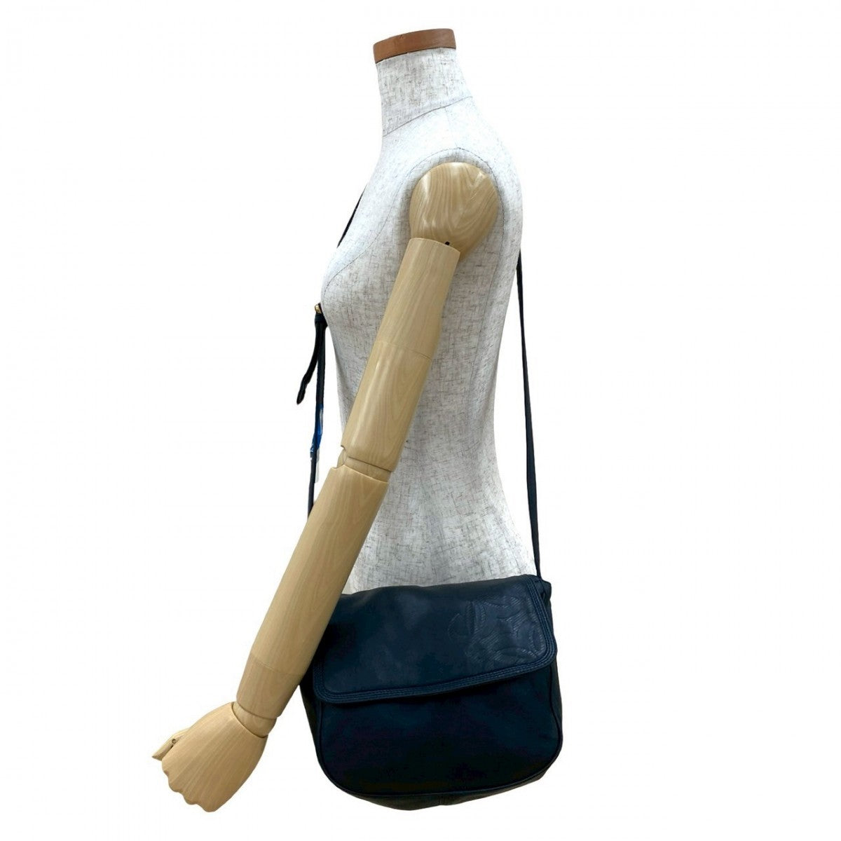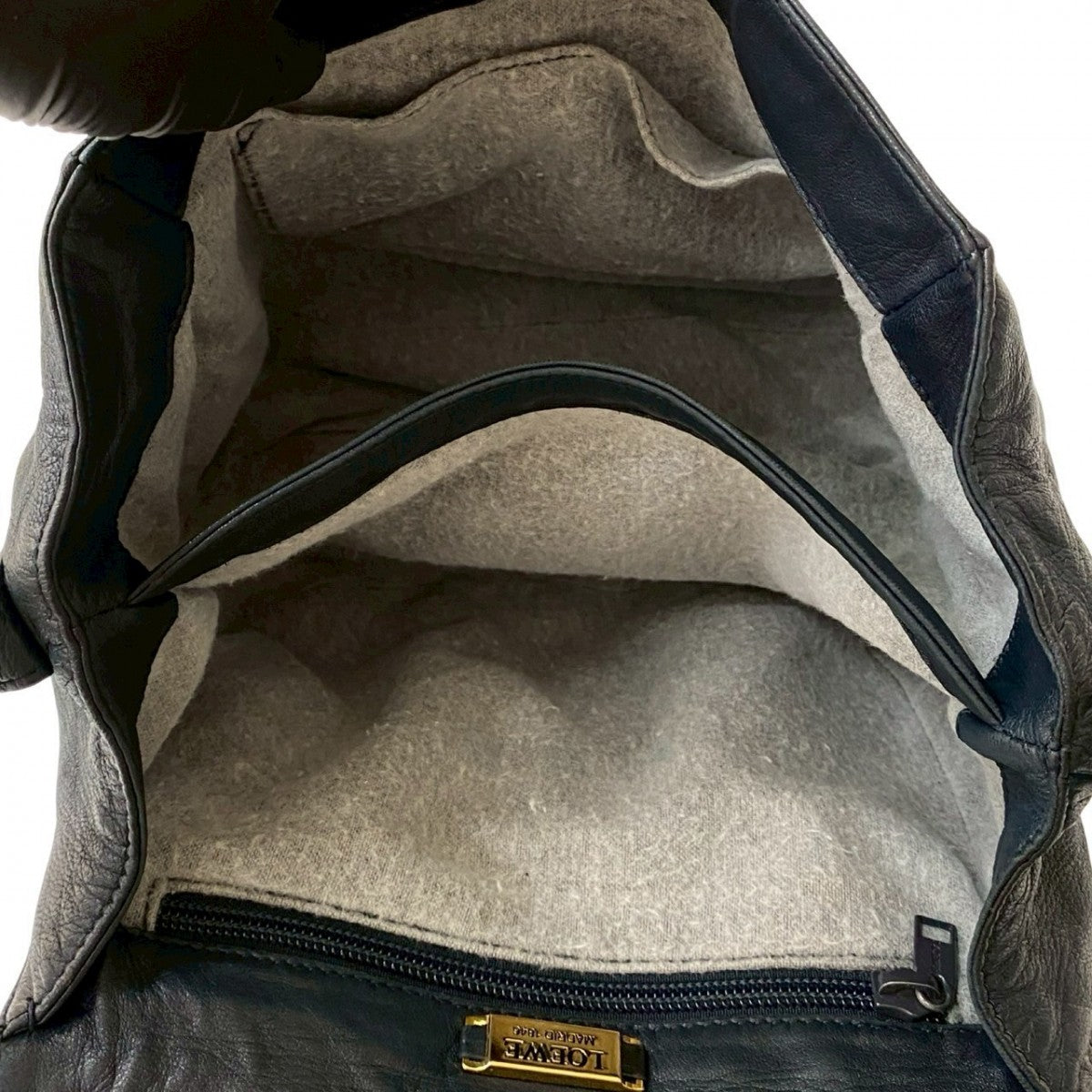 LOEWE Shoulder Bag leather Navy Anagram logo Women Used Authentic