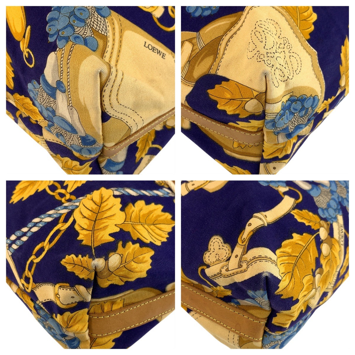LOEWE Tote Bag Canvas, Leather Blue multicolor Tote Bag Shoulder Bag Women Used Authentic