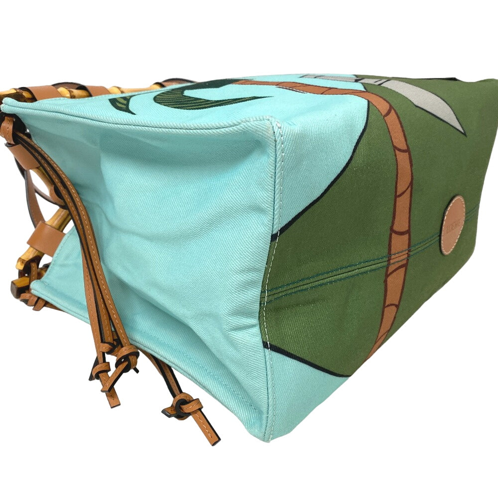 LOEWE Tote Bag Canvas, Leather Light blue Bamboo cushion Women Used Authentic