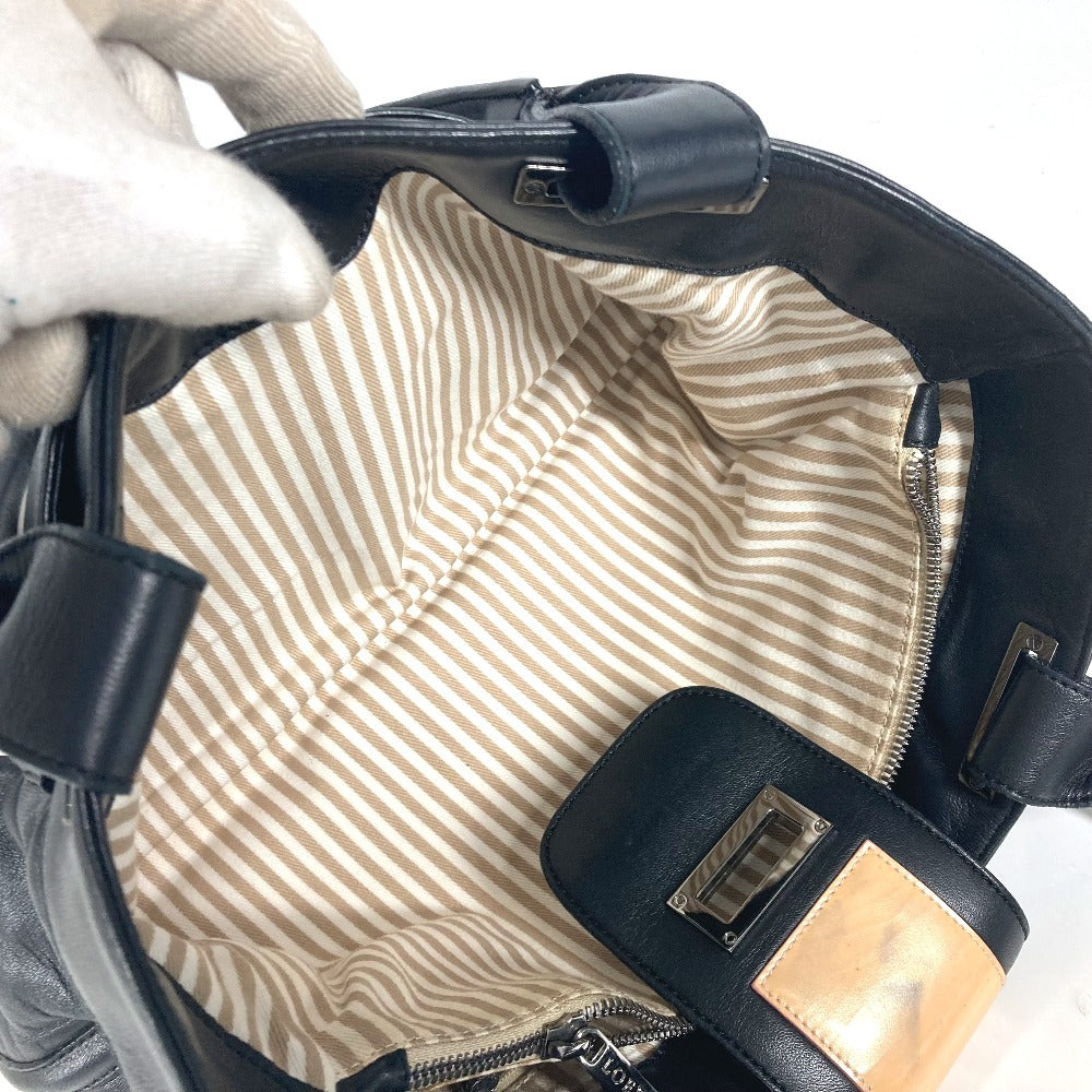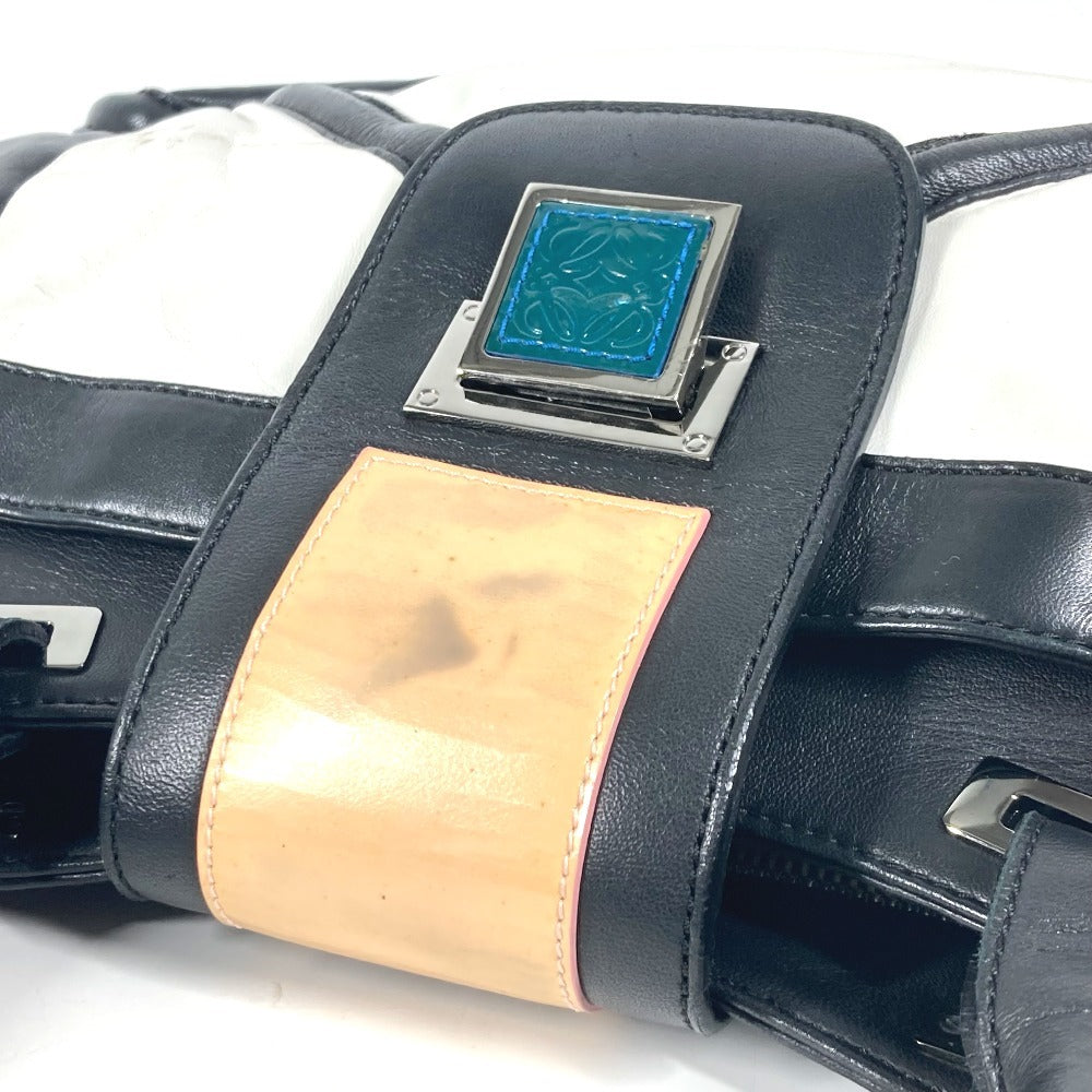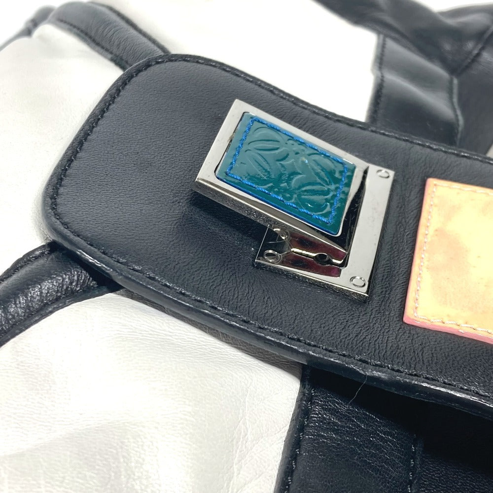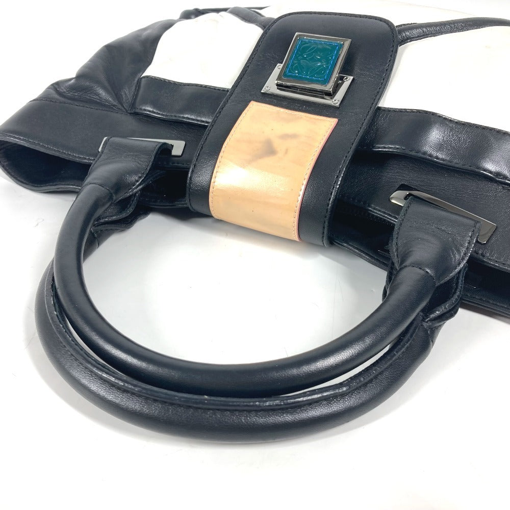 LOEWE Tote Bag leather black logo anagram Women Used Authentic