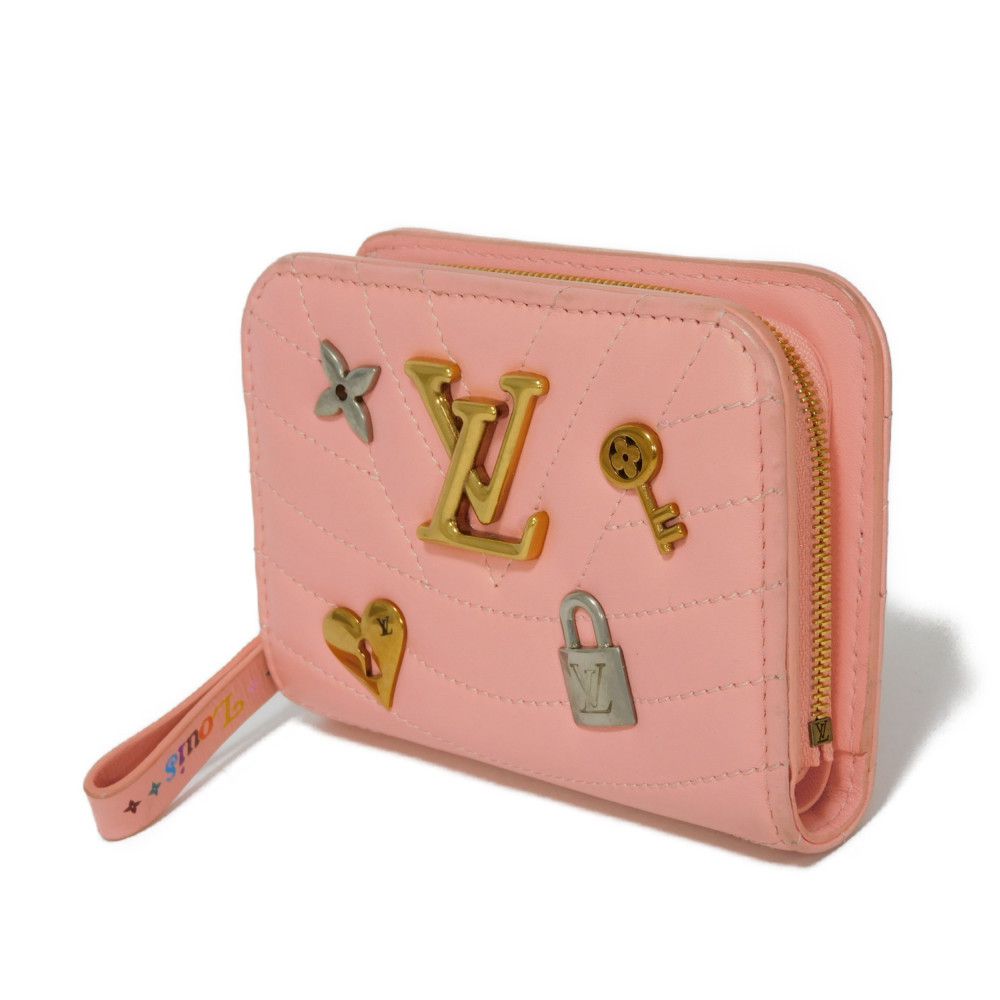 LOUIS VUITTON Bifold Wallet M63965 Smooth Calfskin Leather pink LV logo key padlock heart New Wave Love Rock Portefeuille Compact Zip Women Used Authentic