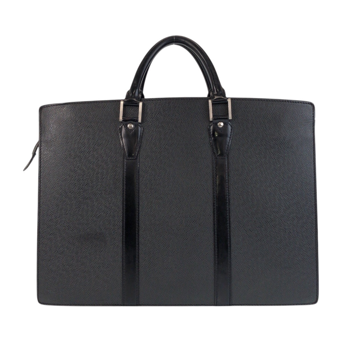 LOUIS VUITTON Business bag M30052 leather Ardoise Black SilverMetal Business bag briefcase Taiga Porto Documan Rozan mens Used Authentic