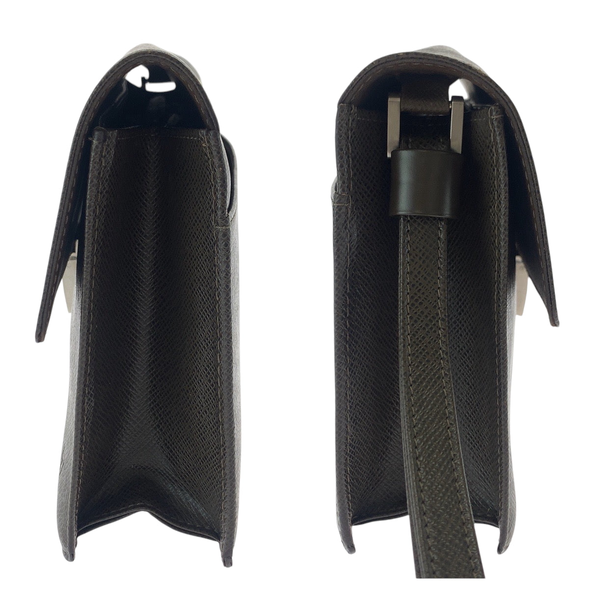LOUIS VUITTON business bag M30786 Taiga Brown Silver Metal business bag clutch bag Taiga Selenga mens Used Authentic