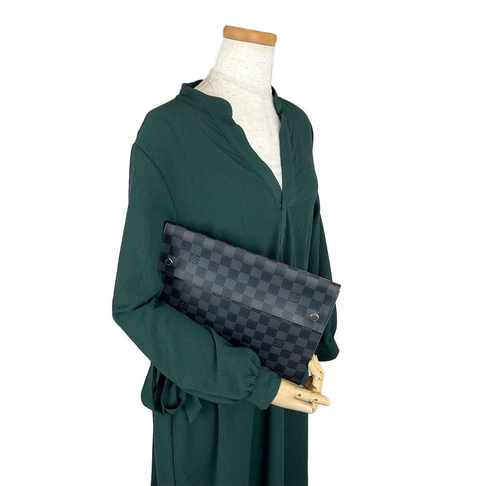 LOUIS VUITTON business bag N60255 Damier Grafitte black Alpha Triple Pouch mens(Unisex) Used Authentic