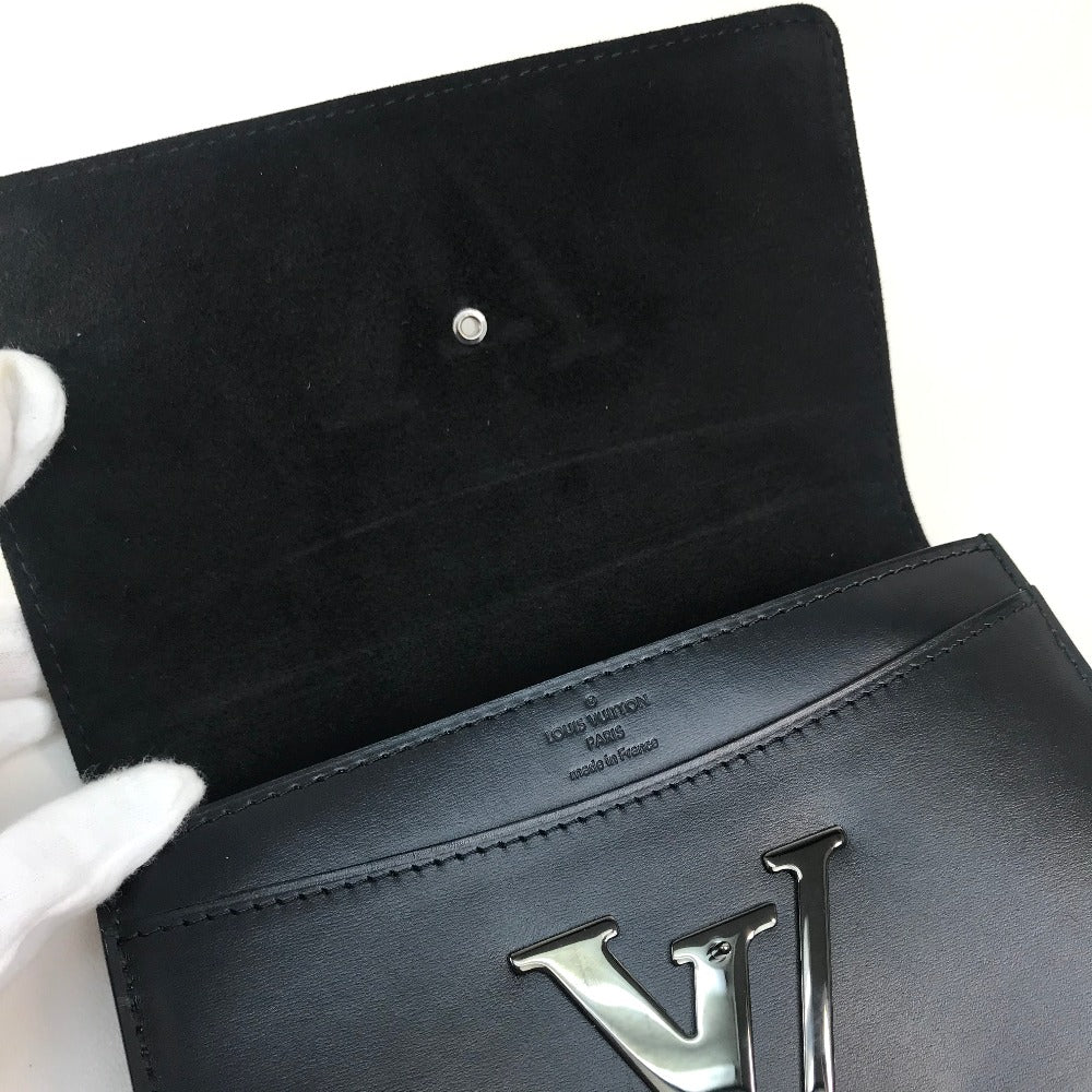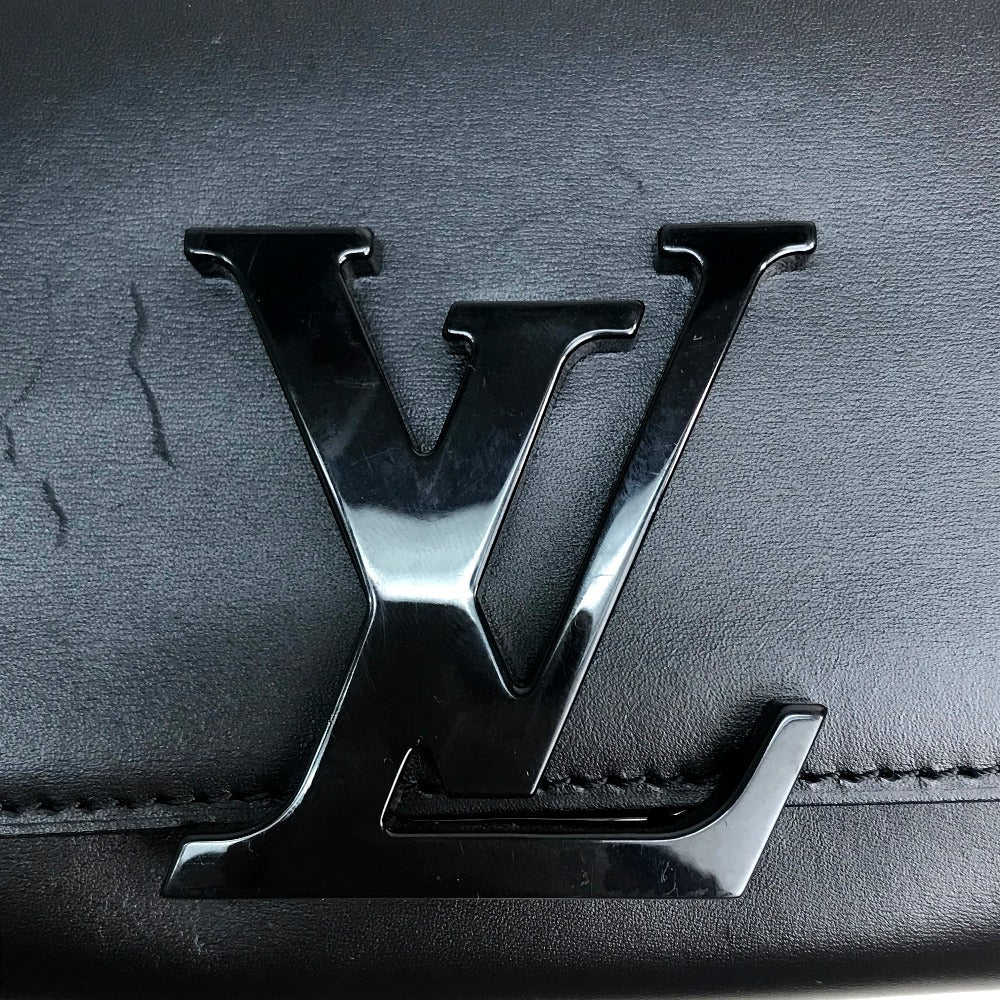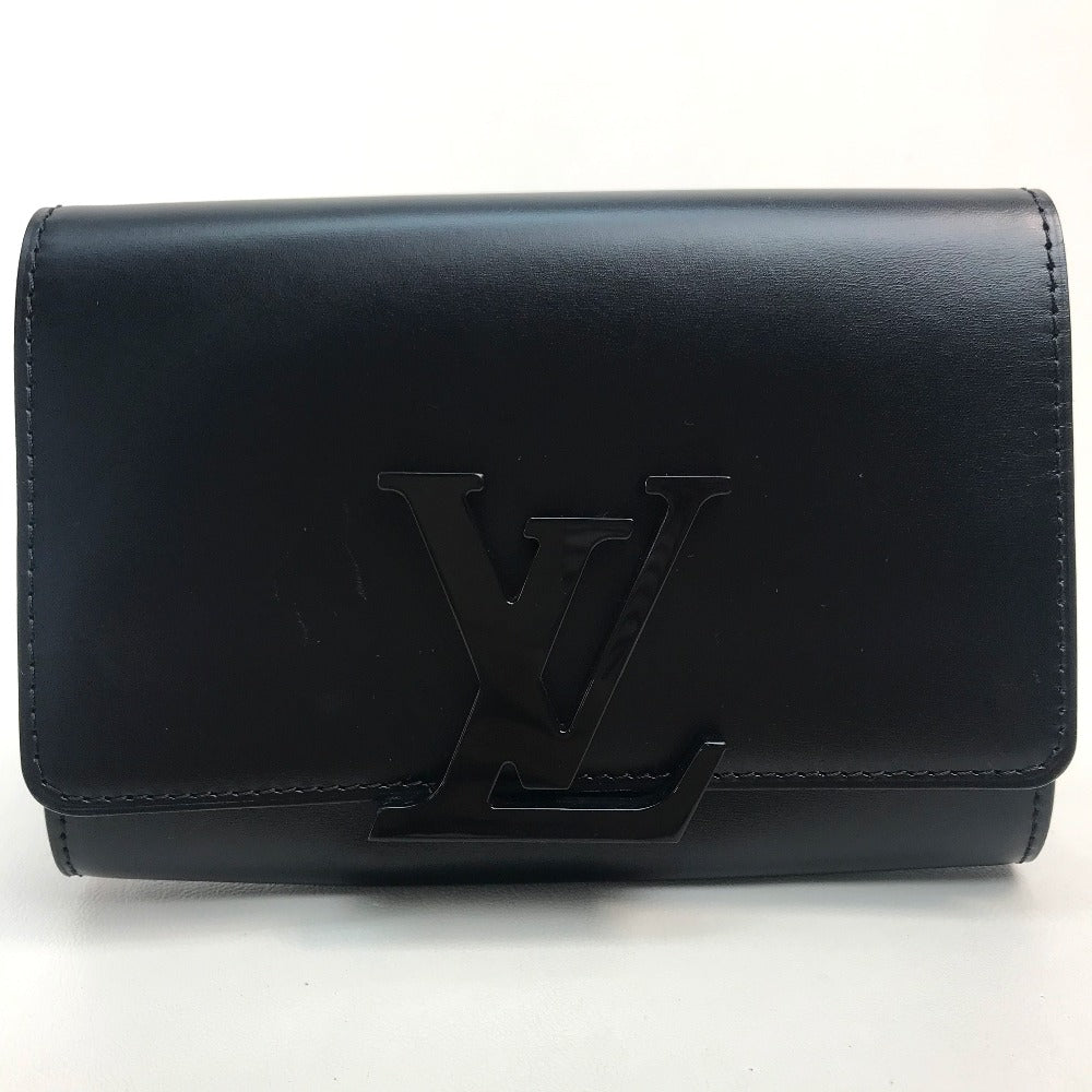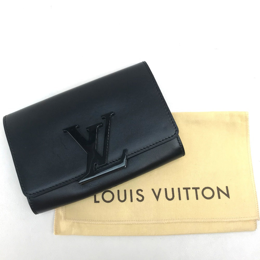 LOUIS VUITTON Clutch bag leather black LV logo Pochette Louise EW Women Used Authentic