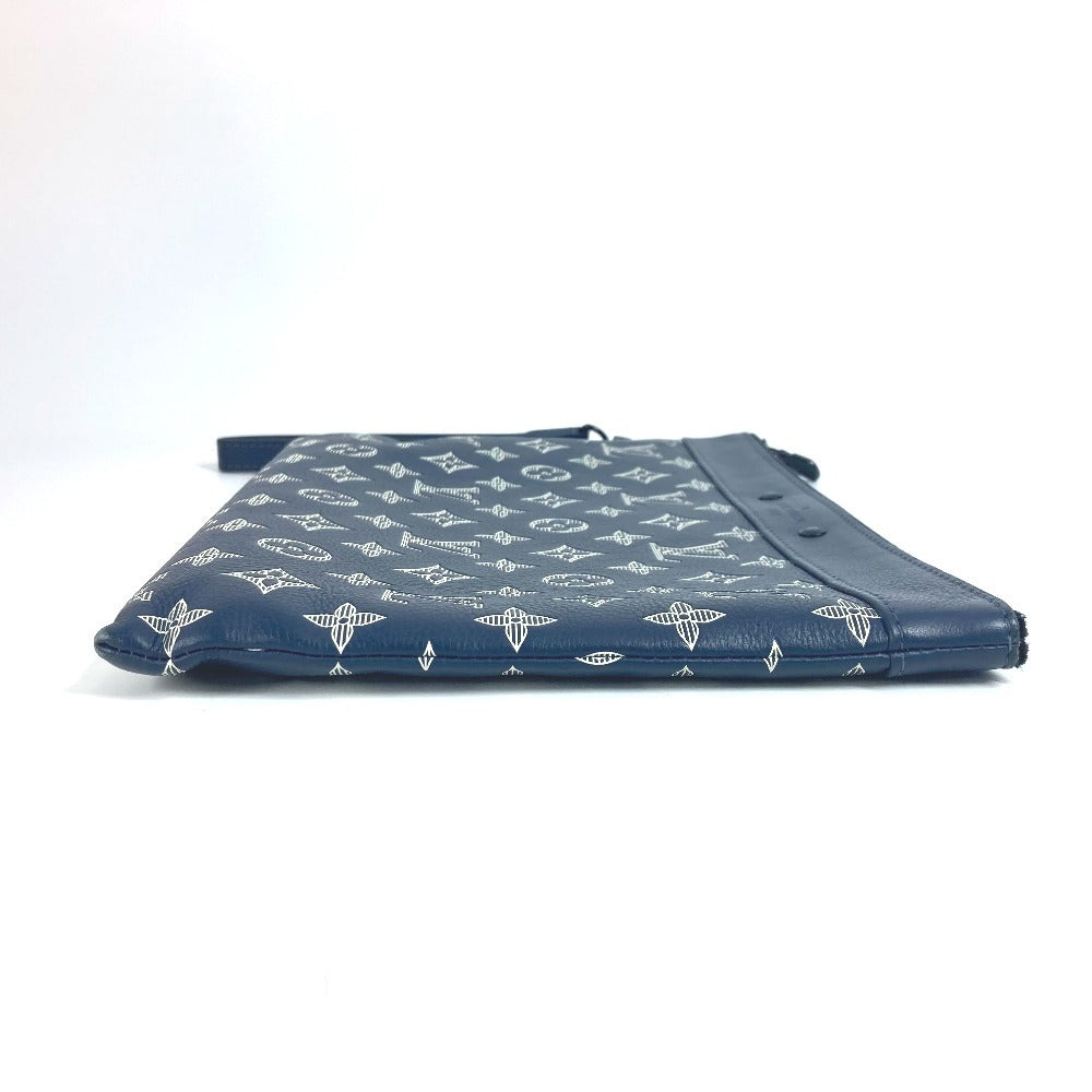 LOUIS VUITTON Clutch bag M83382 Monogram shadow leather Navy Monogram shadow pochette to go unisex(Unisex) Used Authentic