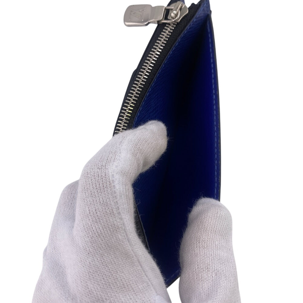 LOUIS VUITTON Coin case M30270 Monogram canvas, Taiga leather cobalt blue Taigalama Coin card holder mens Used Authentic