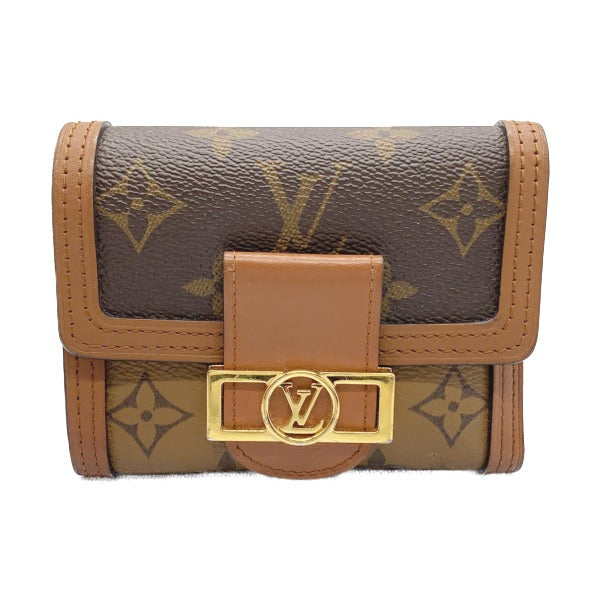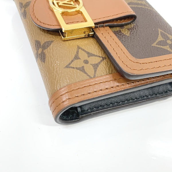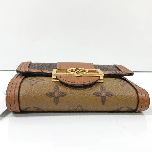 LOUIS VUITTON Coin case M68725 PVC, leather Brown camel Portefeuille Dauphine Monogram reverse compact Women Used Authentic