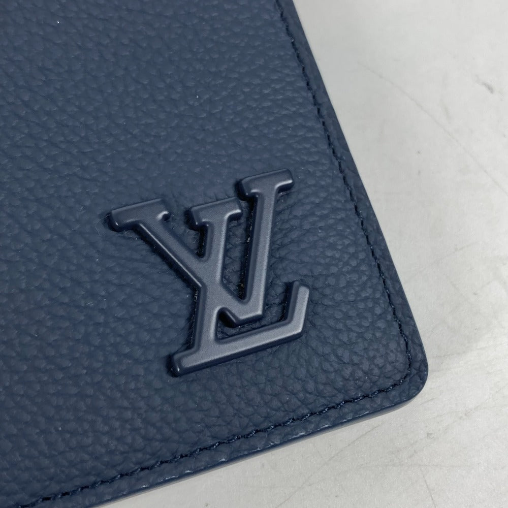 LOUIS VUITTON Folded wallet M81822 leather Navy LV Aero Portefeuille mens Used Authentic
