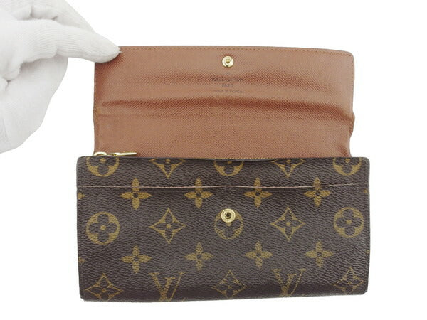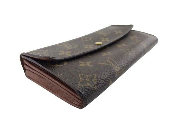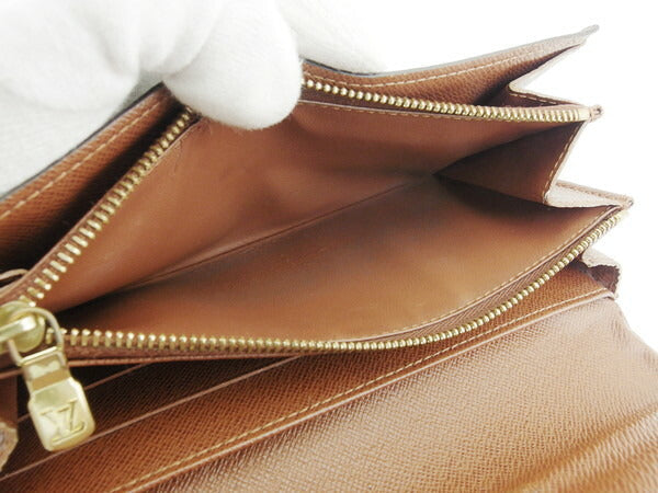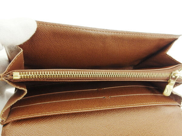 LOUIS VUITTON Long Wallet Purse Brown beige gold Portomoné Credit
