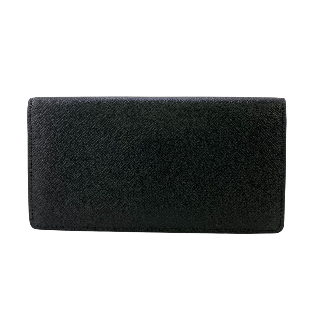 LOUIS VUITTON Long Wallet Purse leather black Taiga Portefeuille Ron