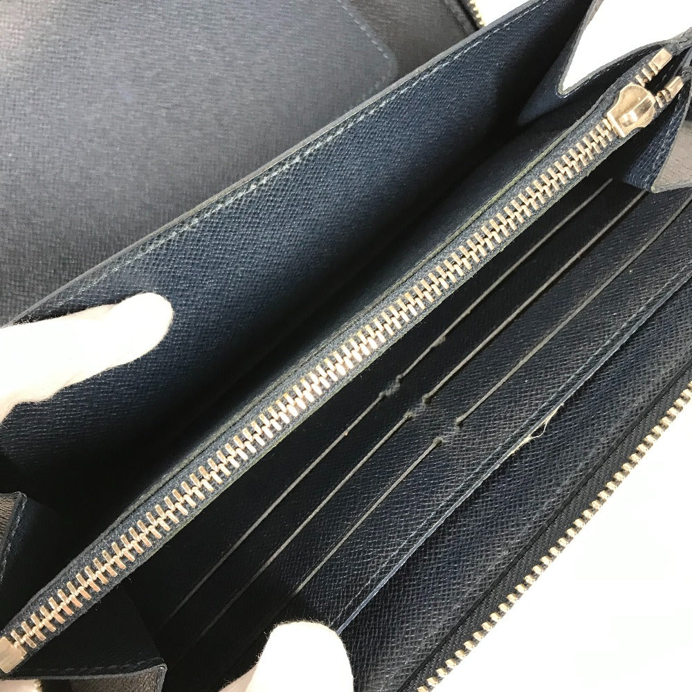 LOUIS VUITTON Long Wallet Purse M30515 Taiga Leather blue Taiga Zippy Organizer mens Used Authentic