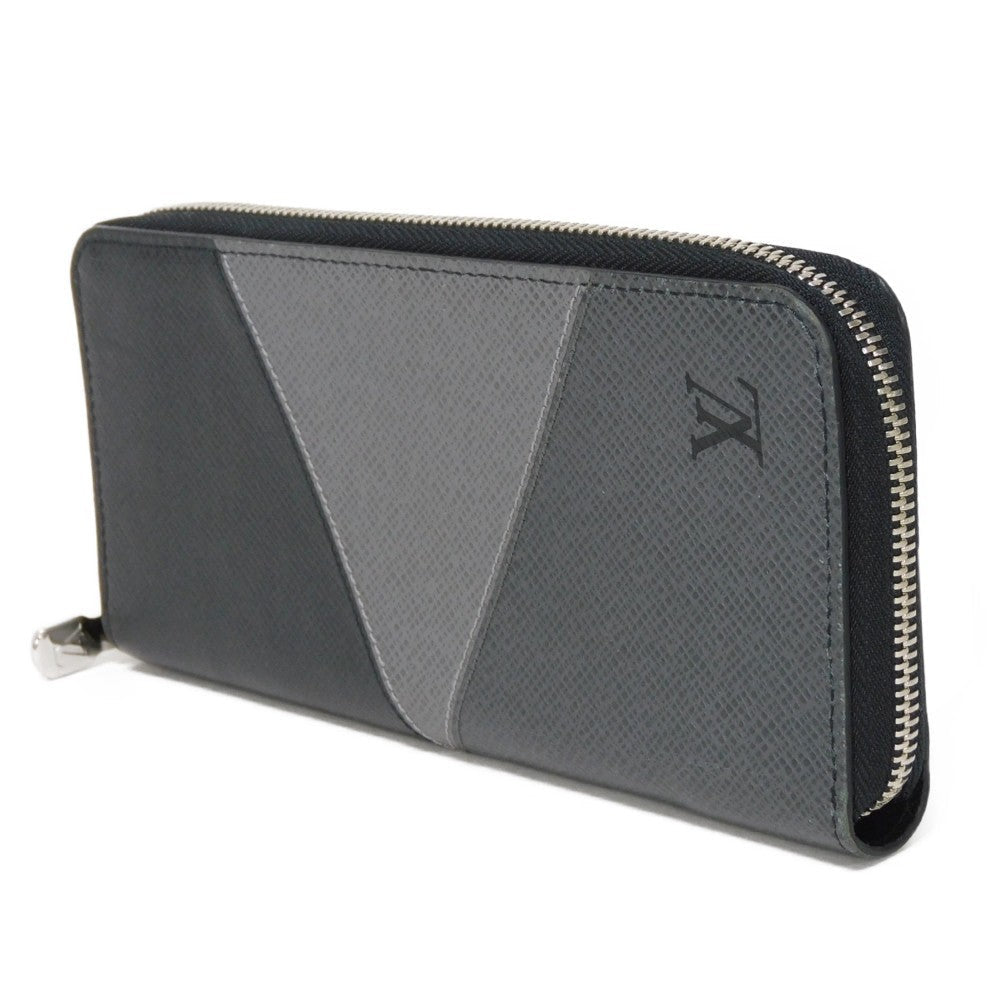 LOUIS VUITTON Long Wallet Purse M30731 Taiga leather (stamped) Noir Grey Trio Color New Zip Around RFID Taiga Zippy Wallet Vertical mens Used Authentic