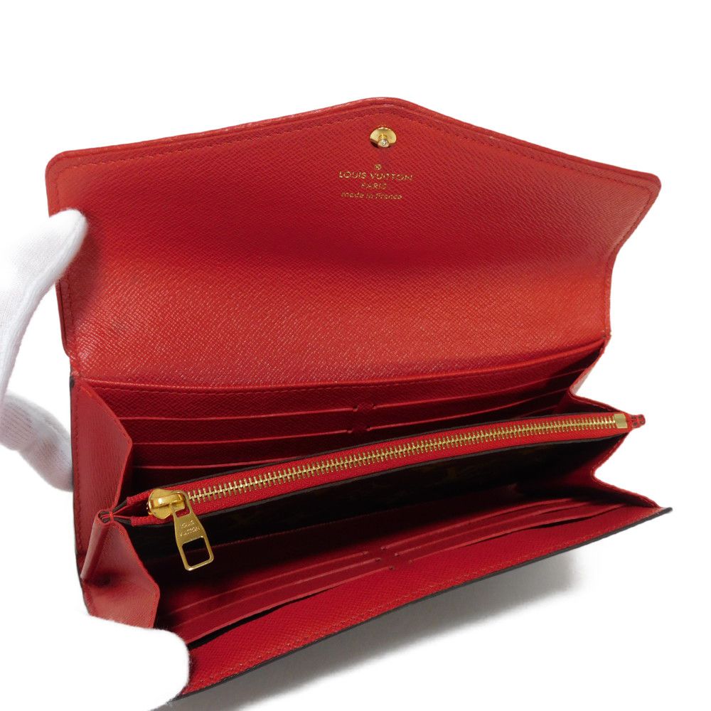 LOUIS VUITTON Long Wallet Purse M61184 Monogram canvas x Calfskin leather Slys LV Logo Flower Brown Red Bifold Wallet Monogram Retiro Portefeuille Sarah unisex(Unisex) Used Authentic