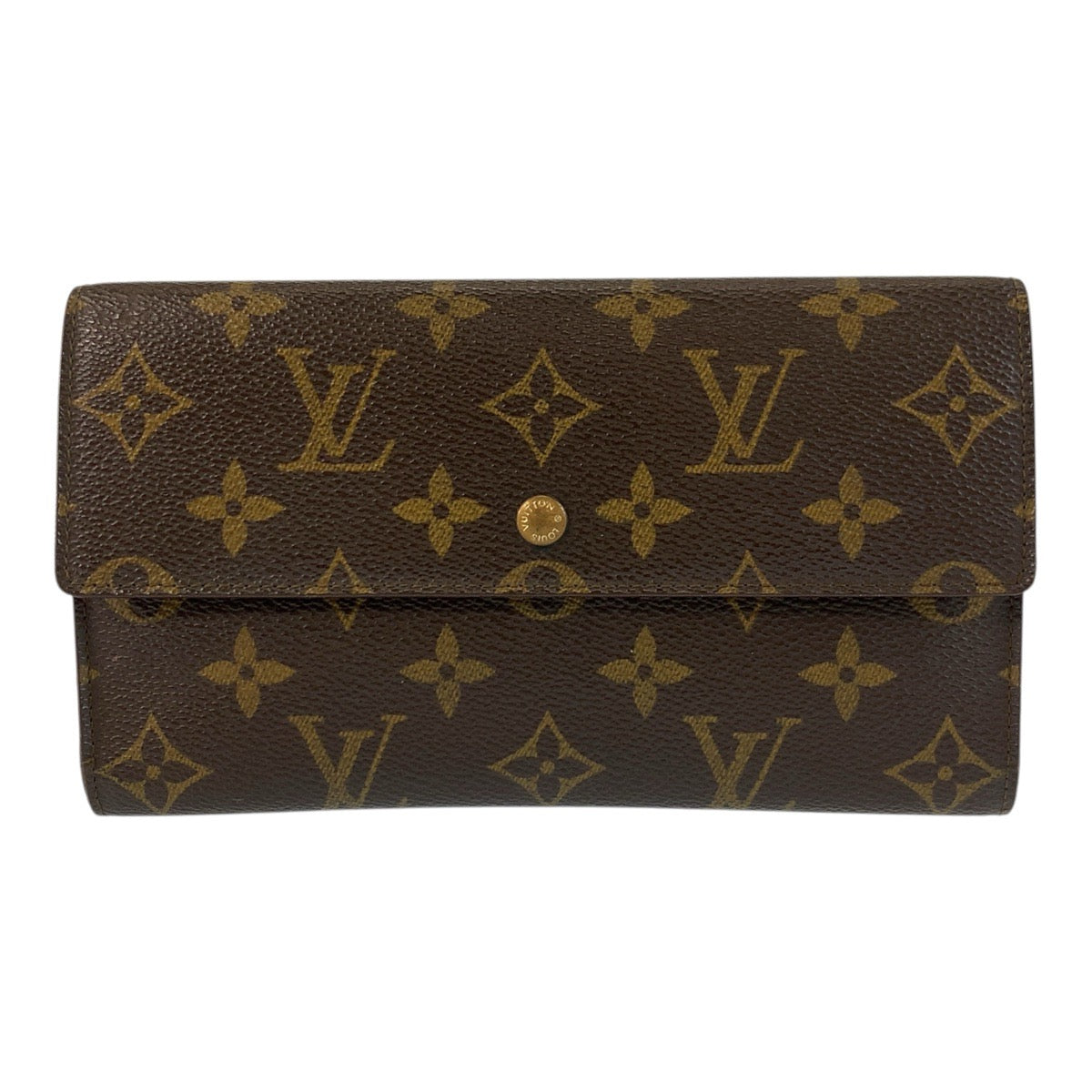 LOUIS VUITTON Long Wallet Purse M61215 PVC Brown Gold Metal Monogram Porte Tresor International